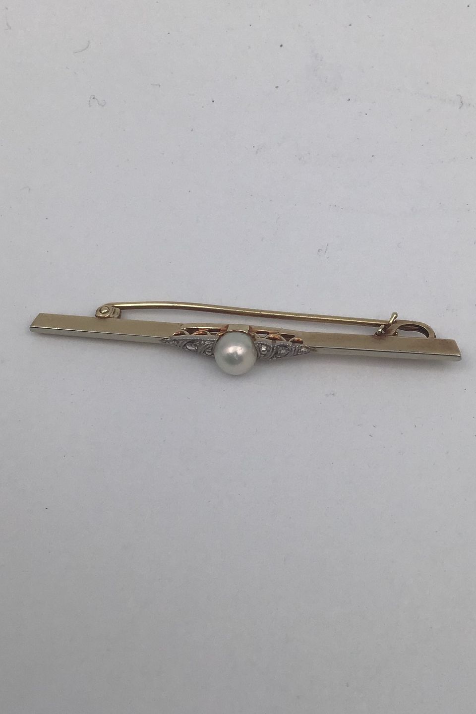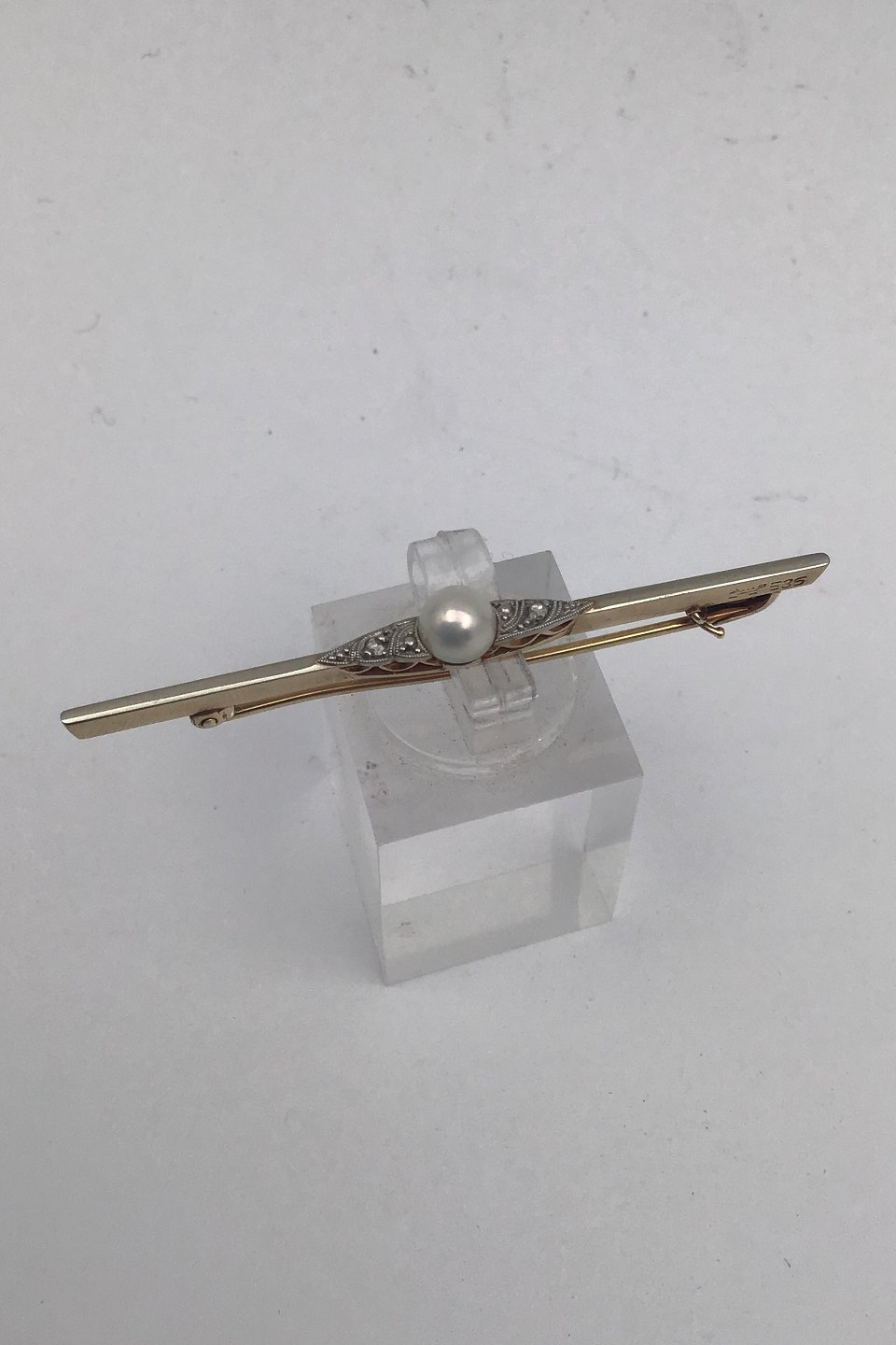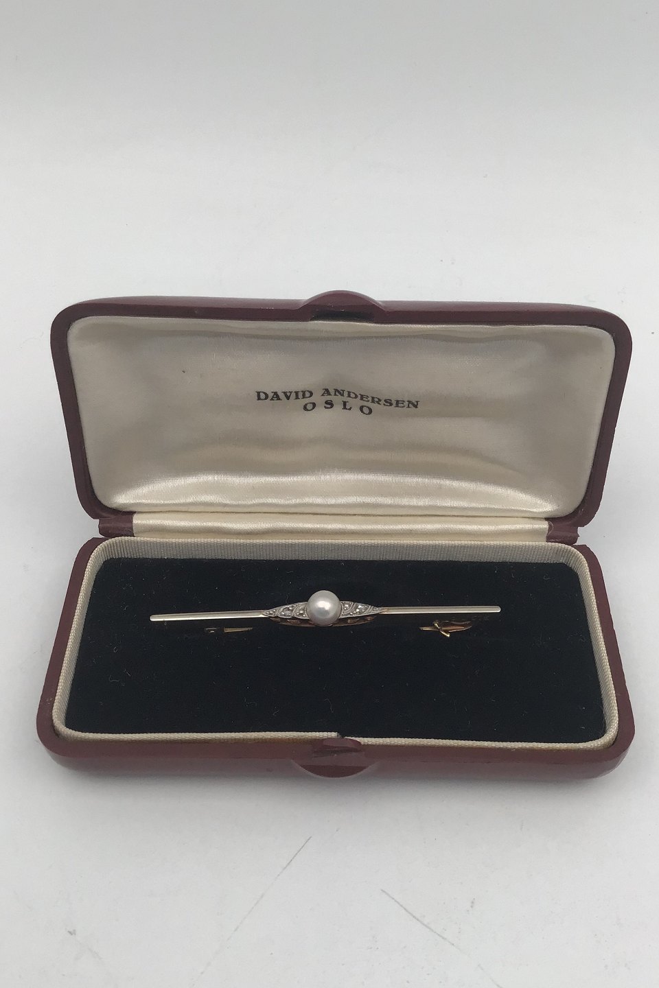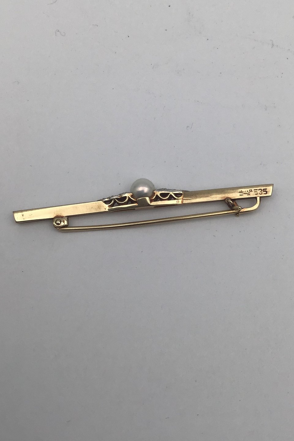 David Andersen 14K Guld Broche med Perle Måler 5.4 cm (2.12 inch) Vægt 2.4 gr. (0.08 oz) (Æske medfølger)