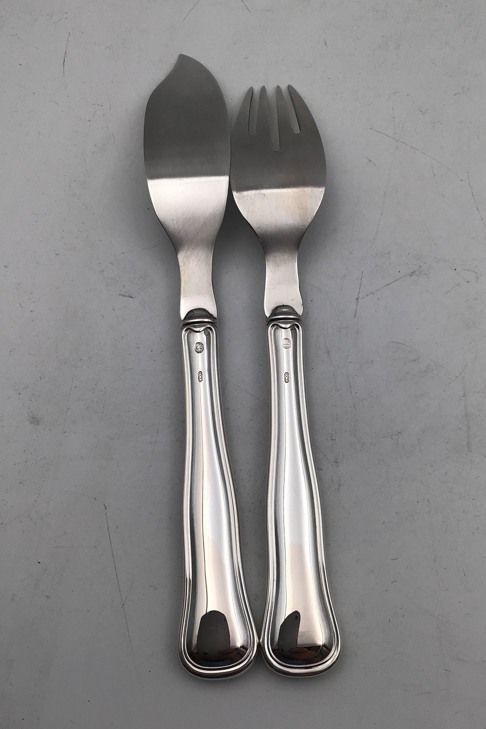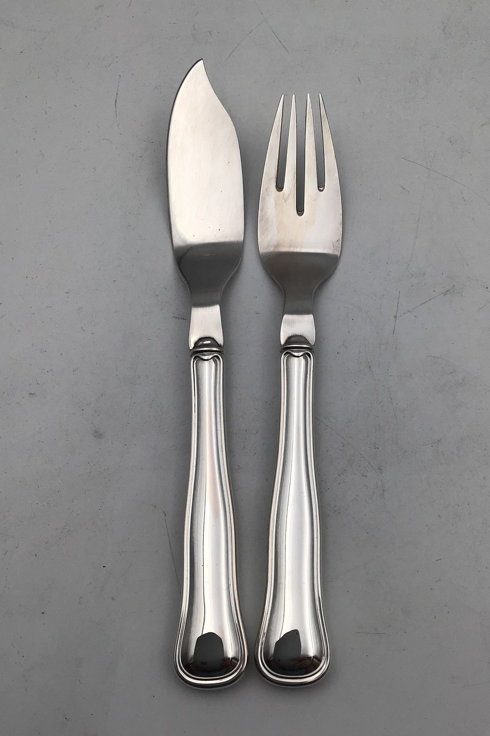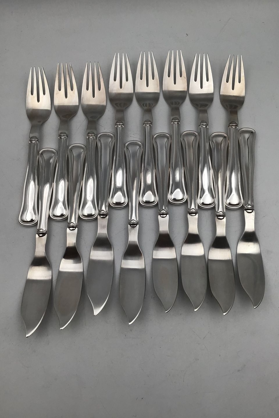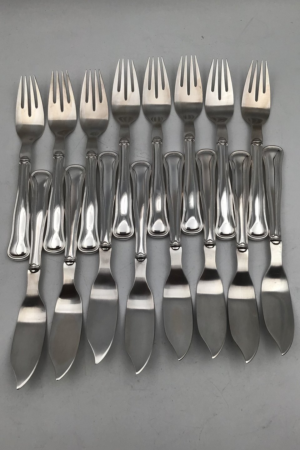 Cohr Sølv/Stål Dobbeltriflet Fiskebestik Sæt (16 dele) Måler 8 Fiskegafler 18.5 cm (7.28 inch) 8 Fiskeknive 20 cm (7.87 inch)