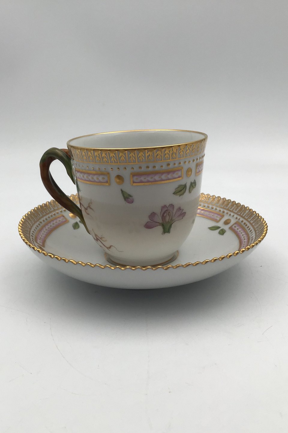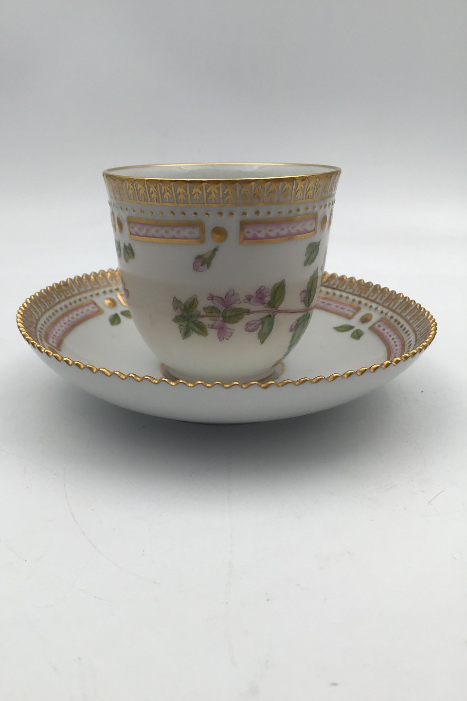 Royal Copenhagen Flora Danica Kaffekop og Underkop No. 20/3597. Latinsk Navn: Euphrasia officinalis L Måler Kop: 7 cm x 7,5 cm diam. Underkop: 13,8 cm
