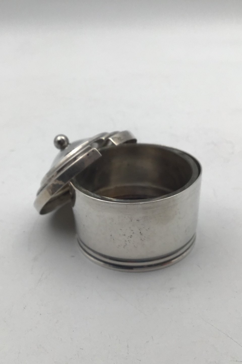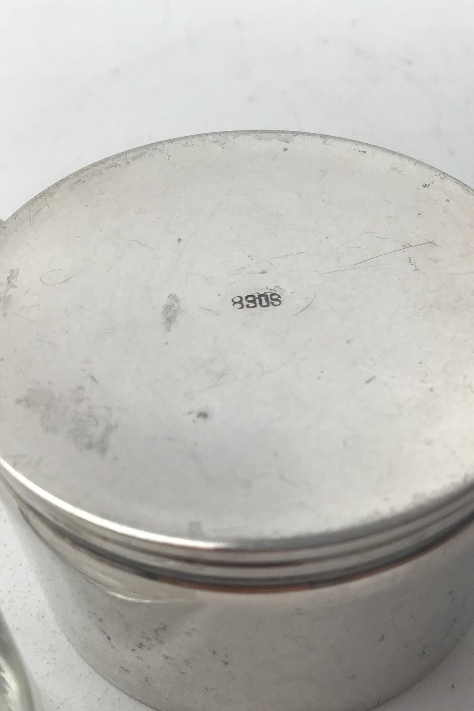 Sølv Salt kar med låg Måler Diam 4.9 cm (1.92 inch) H 4.5 cm (1.77 inch) Vægt m glasindsats 70 gr ( 2.46 oz)