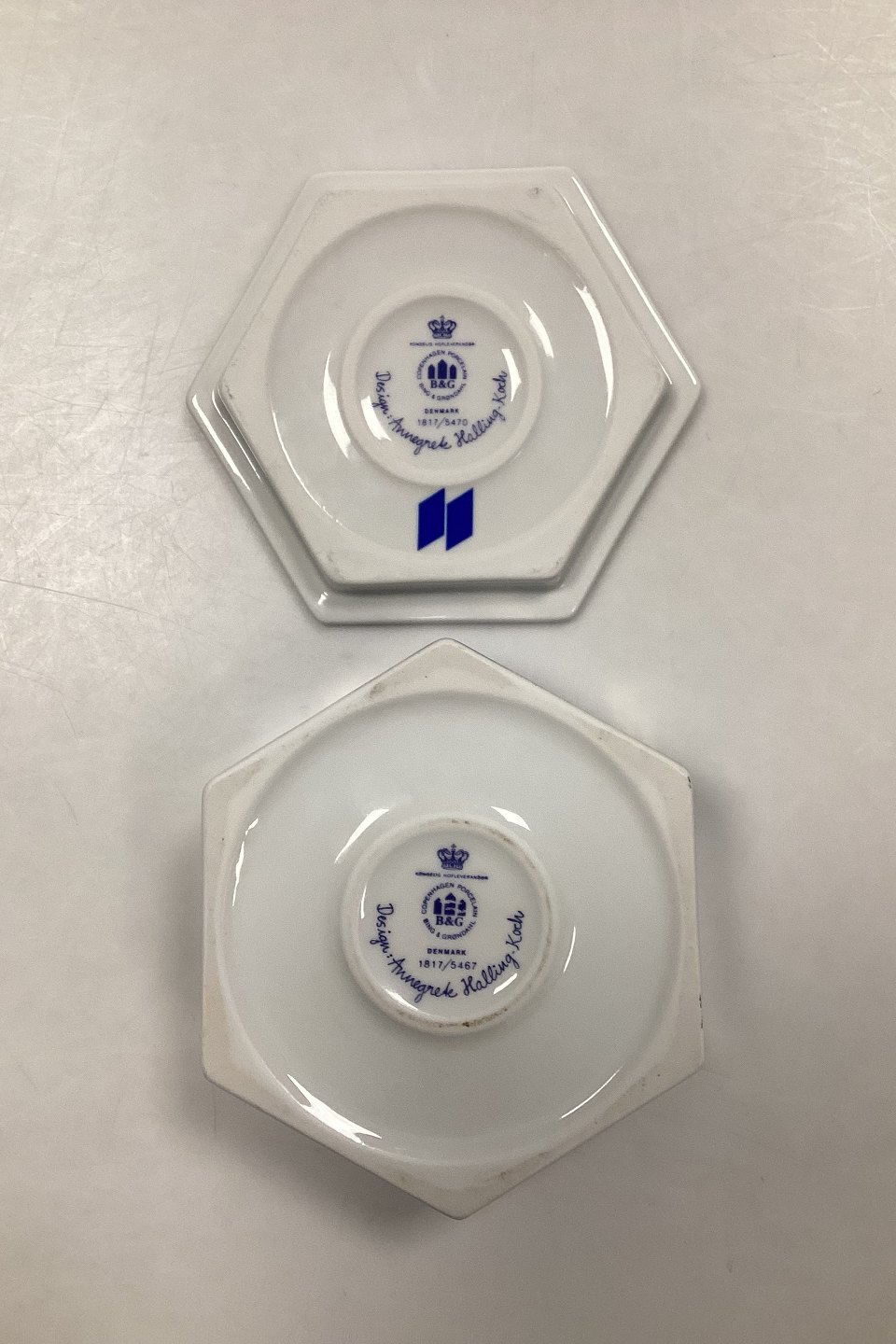 Bing and Grøndahl Bonbonniere by Annegrete Halling-Koch No. 1817/5467/5470. Shades of Blue with Gold.