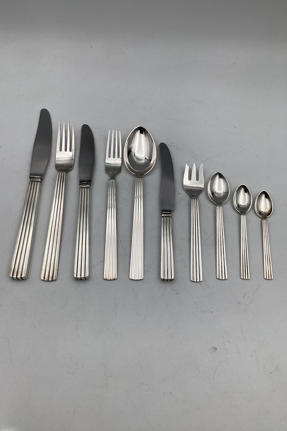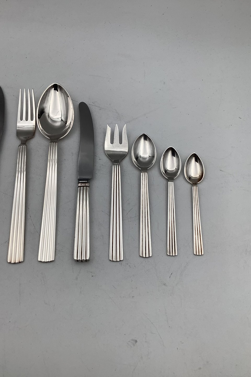 Georg Jensen Sterling Sølv Bernadotte Spise Bestik Sæt 12 Personer (120 dele)