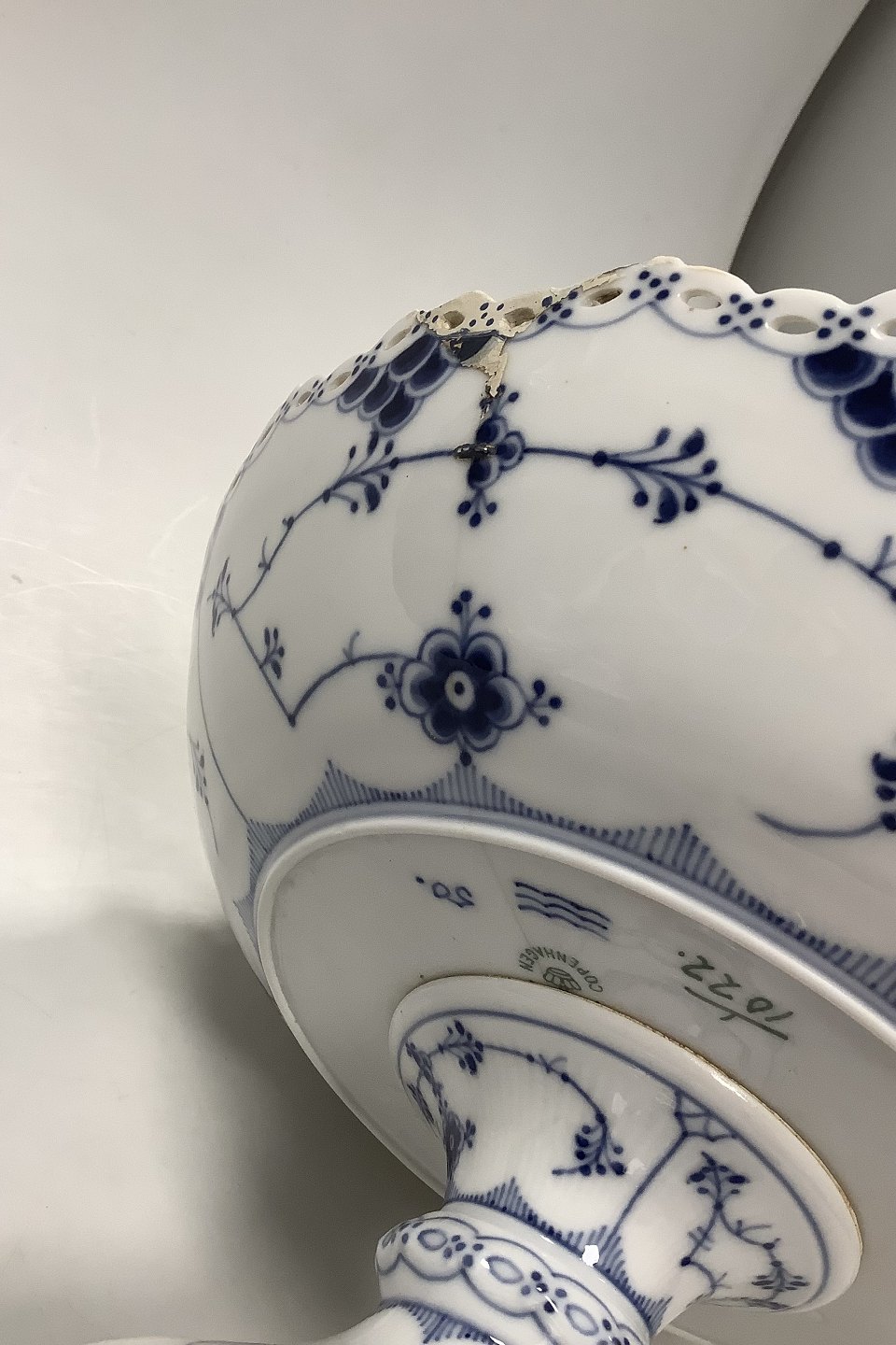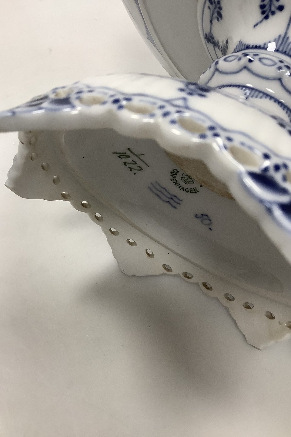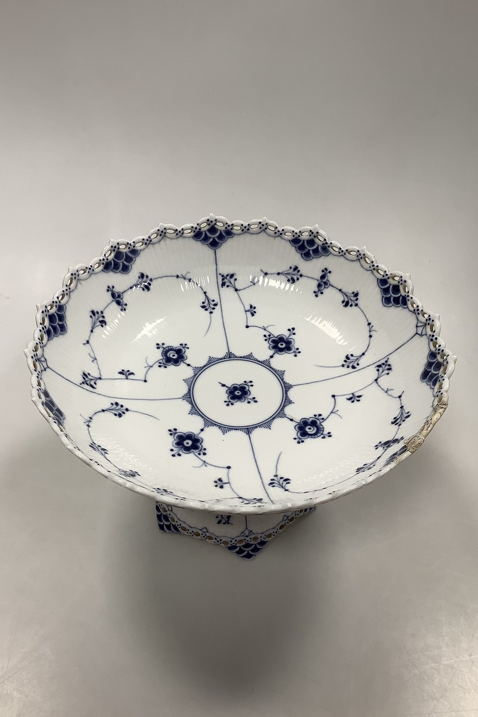 Royal Copenhagen Blue Fluted Full Lace Cake Bowl on foot No 1022