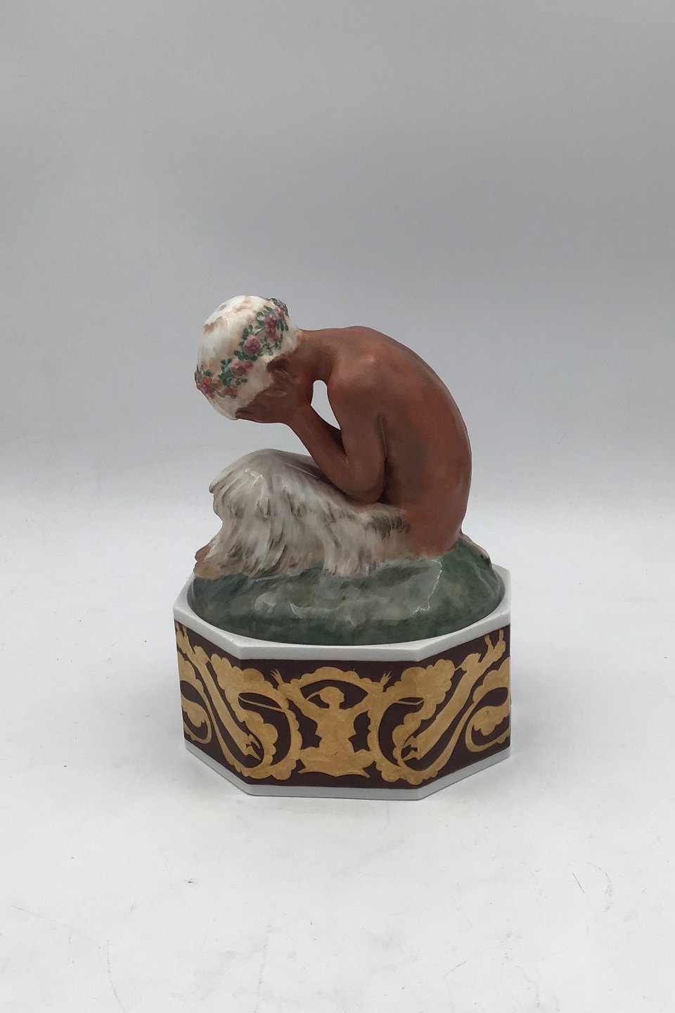 Royal Copenhagen Gerhard Henning Overglaze Figurine Weeping Faun on stand No. 1188