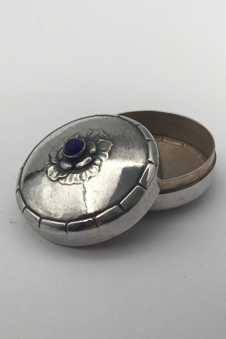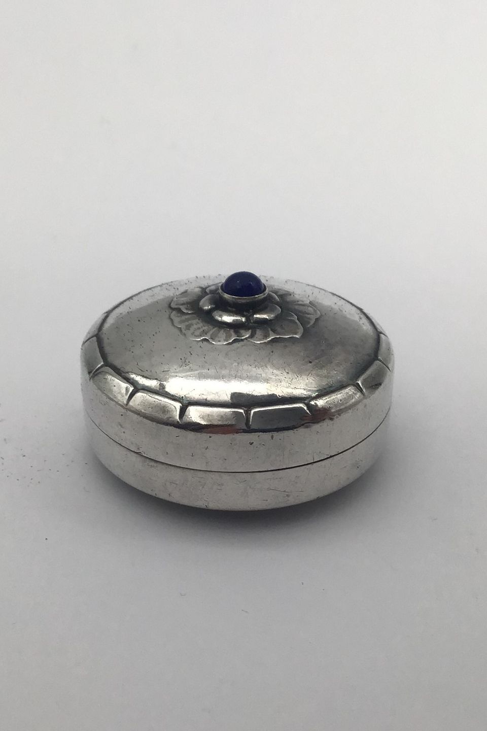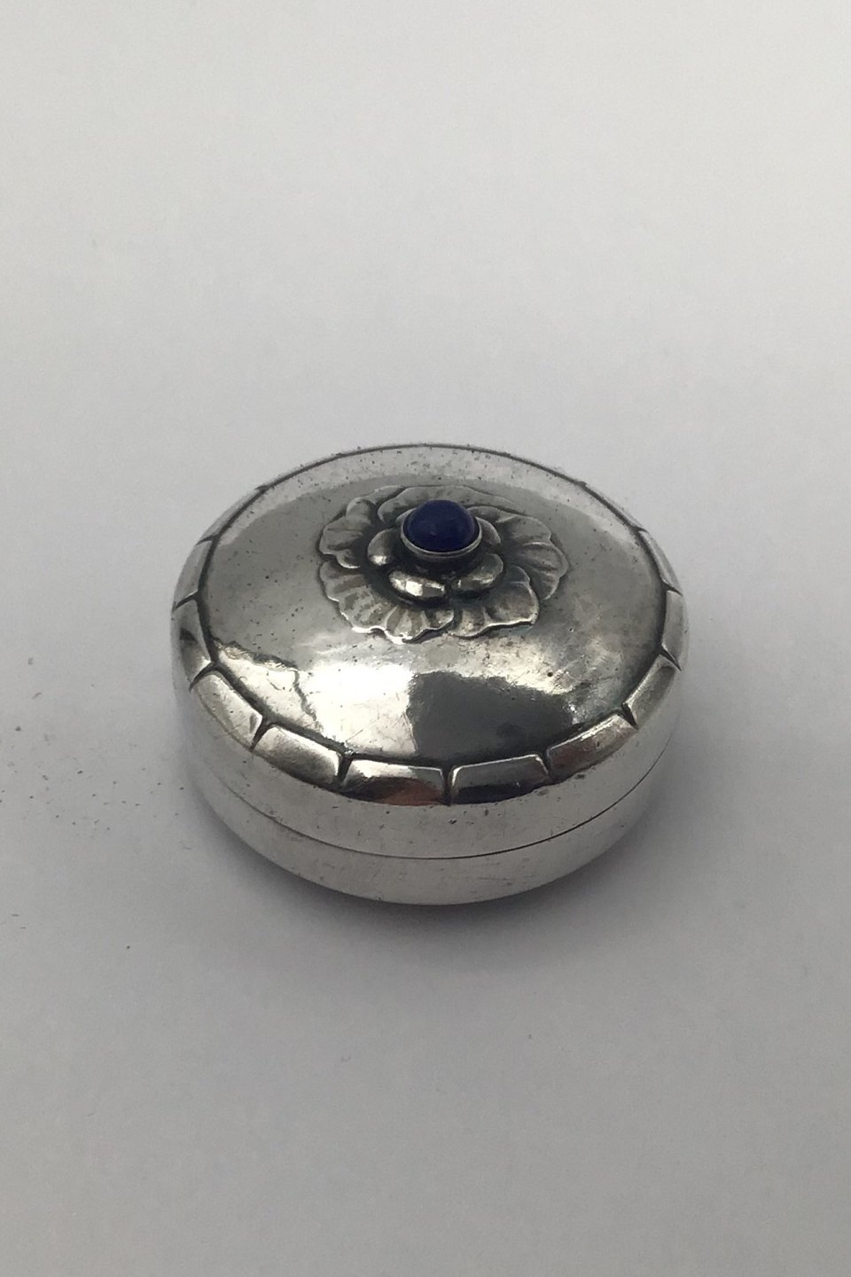 Georg Jensen Sterling Sølv Pilleæske No. 79 D (Lapis Lazuli) Måler Diam 3.8 cm (1.49 inch) Vægt 21.3 gr (0.75 oz)