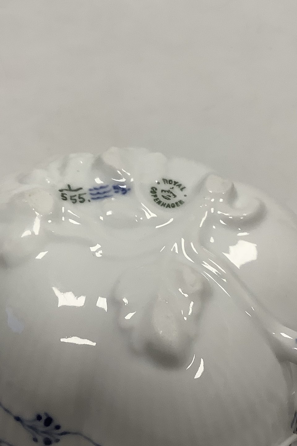 Royal Copenhagen Blue Fluted Halflace Small Leaf Shaped Bowl No 555