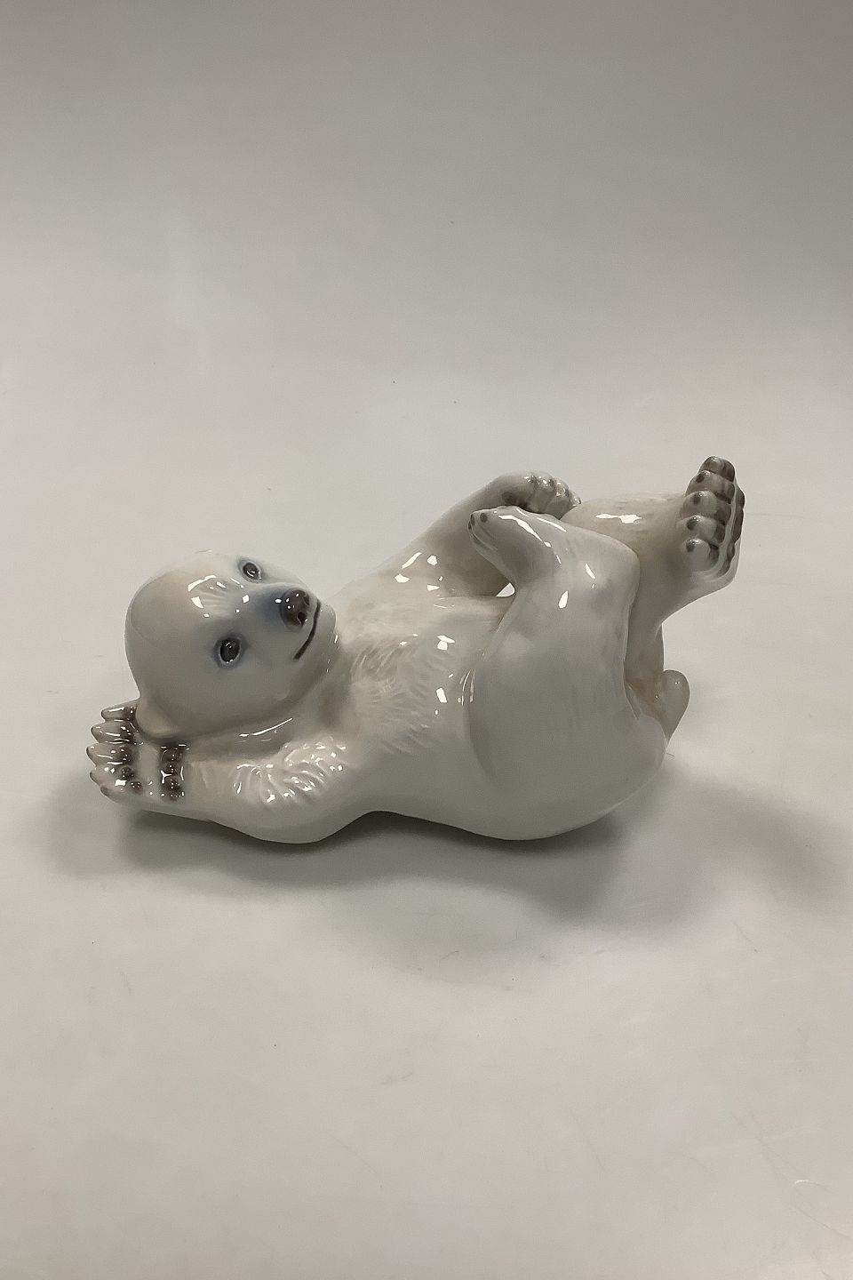 Royal Copenhagen Figur af isbjørneunge på ryggen No 537.