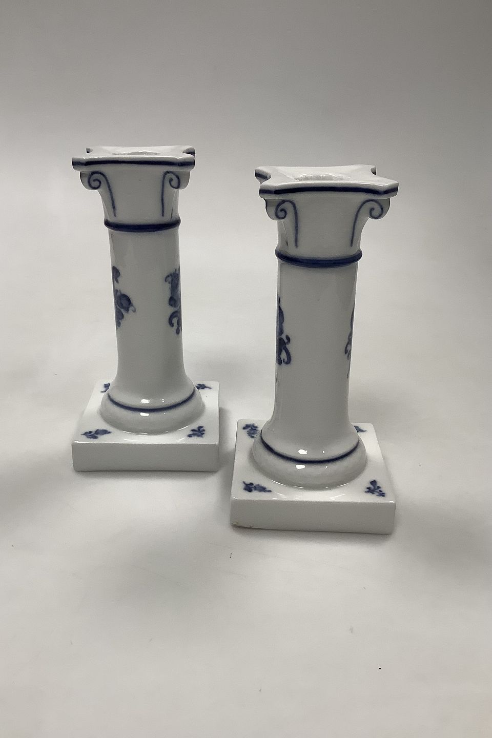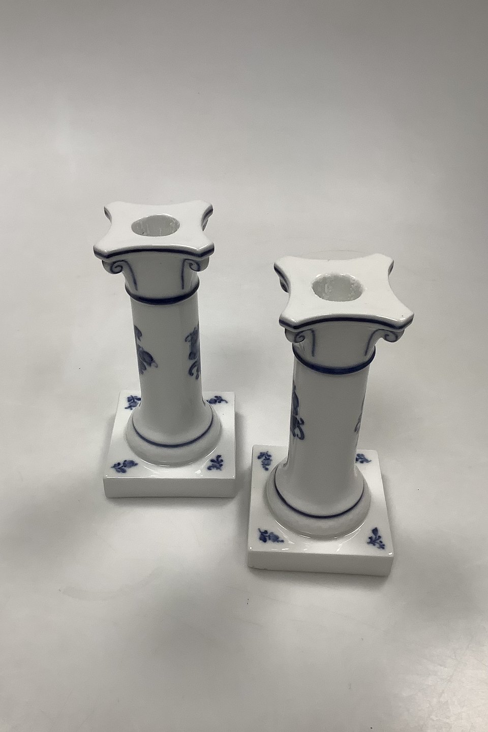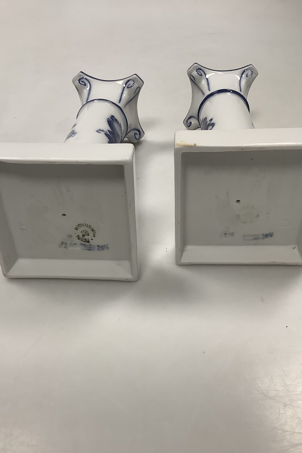 Pair of Royal Copenhagen Blue Flower Braided Candlesticks No 8215