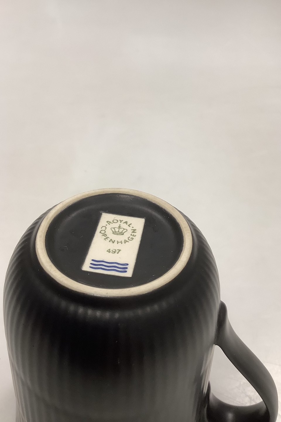 Royal Copenhagen Sort Riflet kop med hank No 497