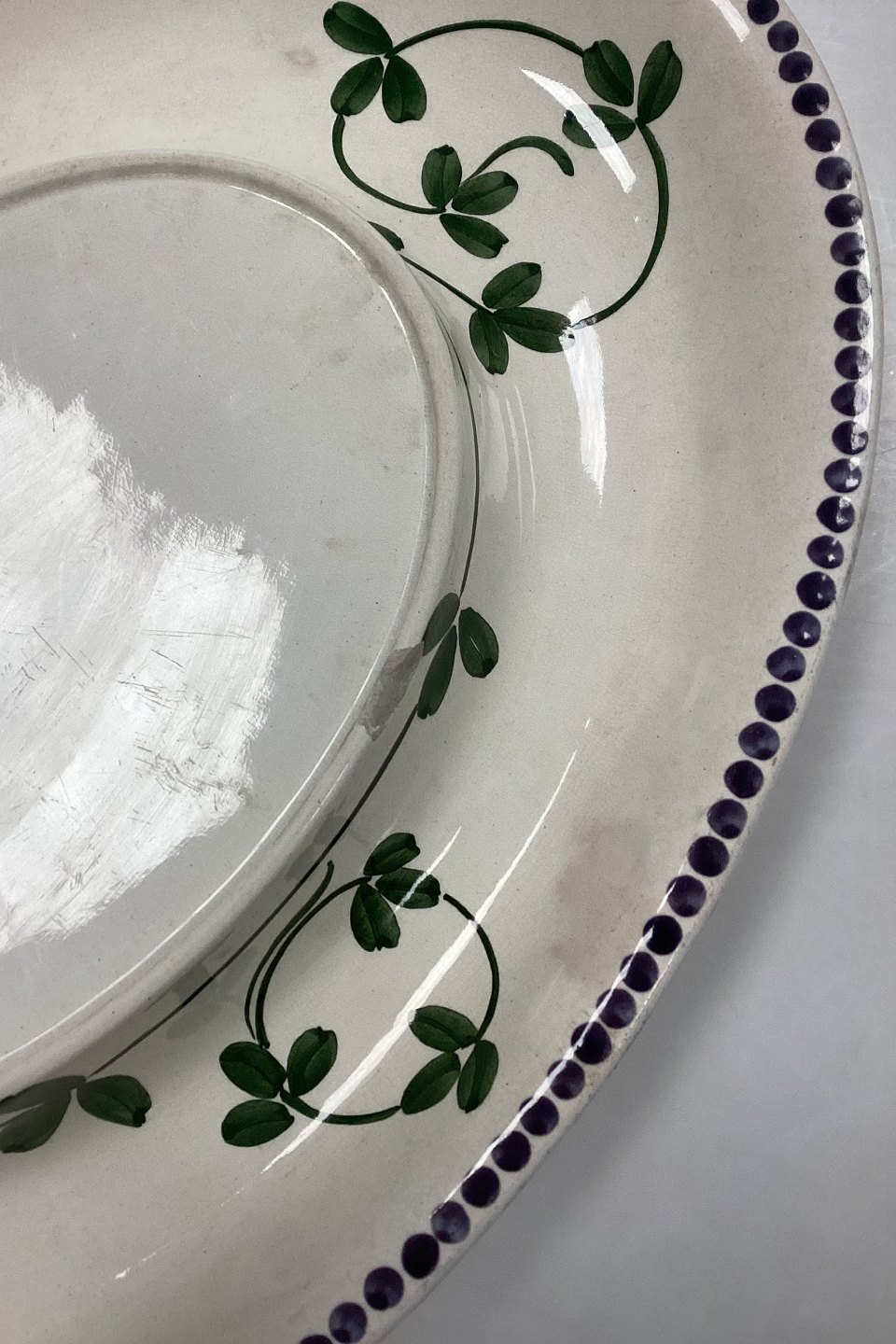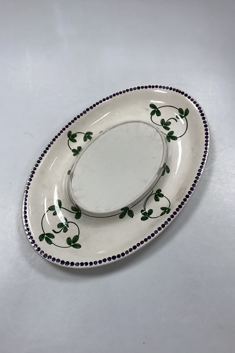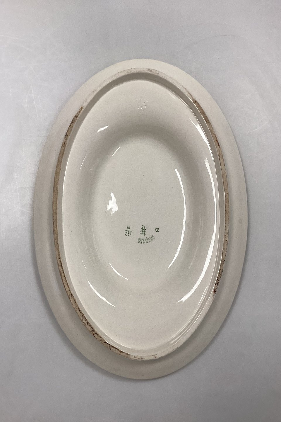 Aluminia Guldregn (Laburnum) Oval Terrine Dish No. 10/235. Measures 42 cm x 28 cm / 16.54 in. x 11.03 in. Two chips on the podium in the middle. Designed by Harald Slott-Møller 1902