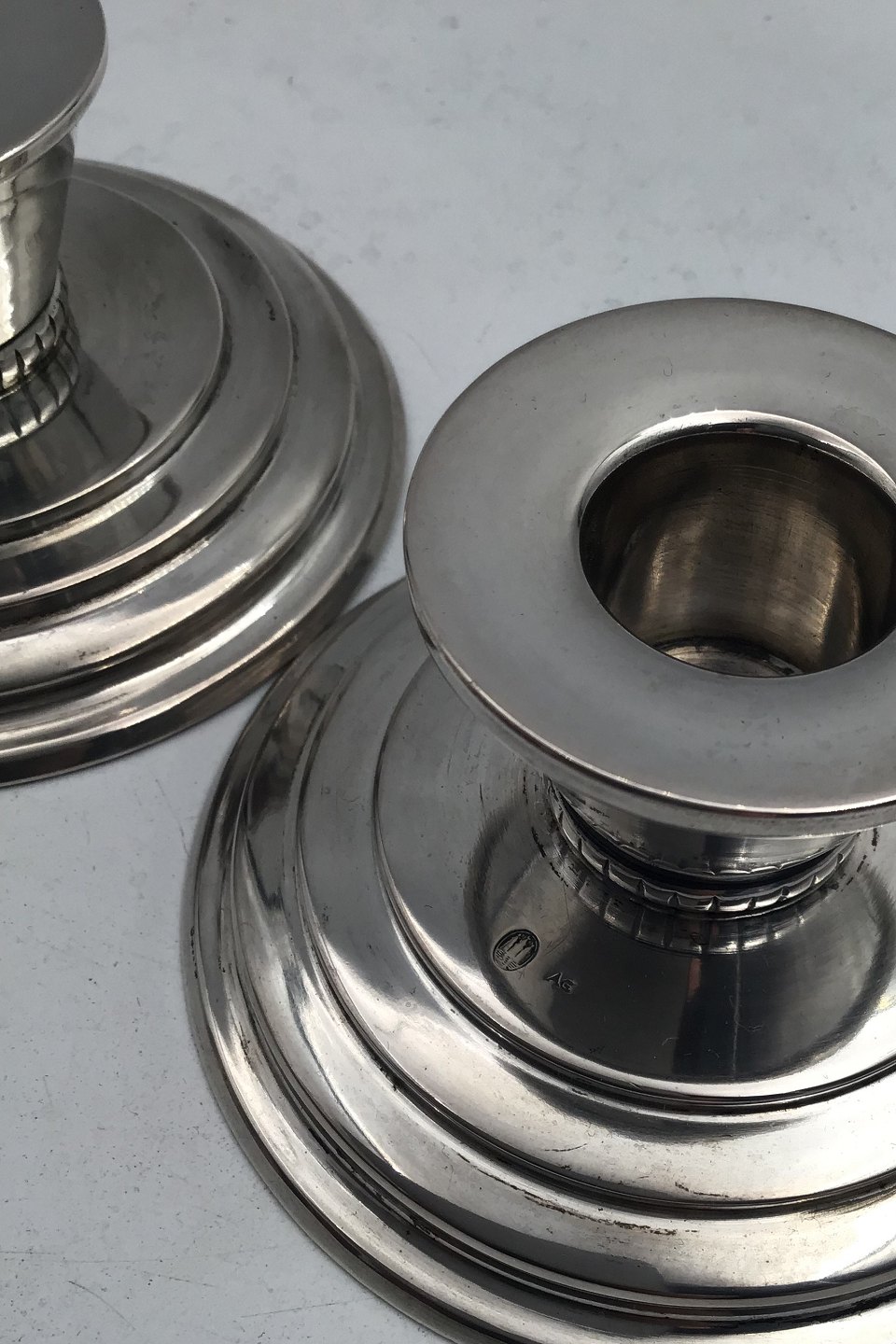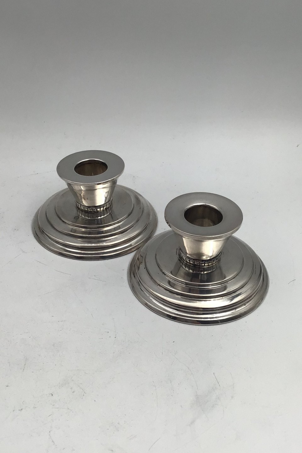 Godtbergsen Sølv Lysestager (2) Måler H 5 cm Diam 10 cm Samlet vægt 348.5 gr. (11.21 oz) (Udfyldt)