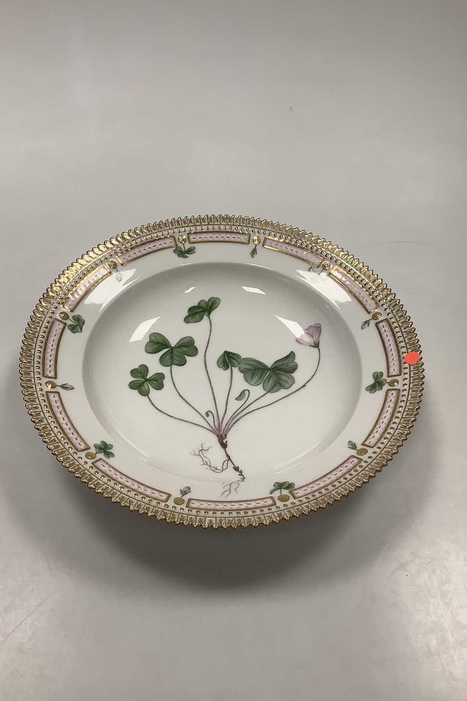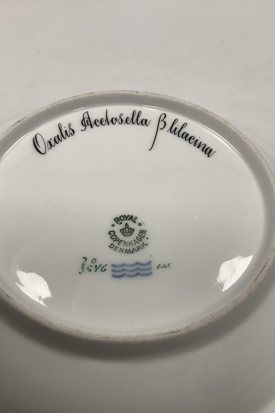 Royal Copenhagen Flora Danica Dyb Tallerken No 20/3546 eller 604. Latinsk navn: Oxalis Acetosella Beta lilacina