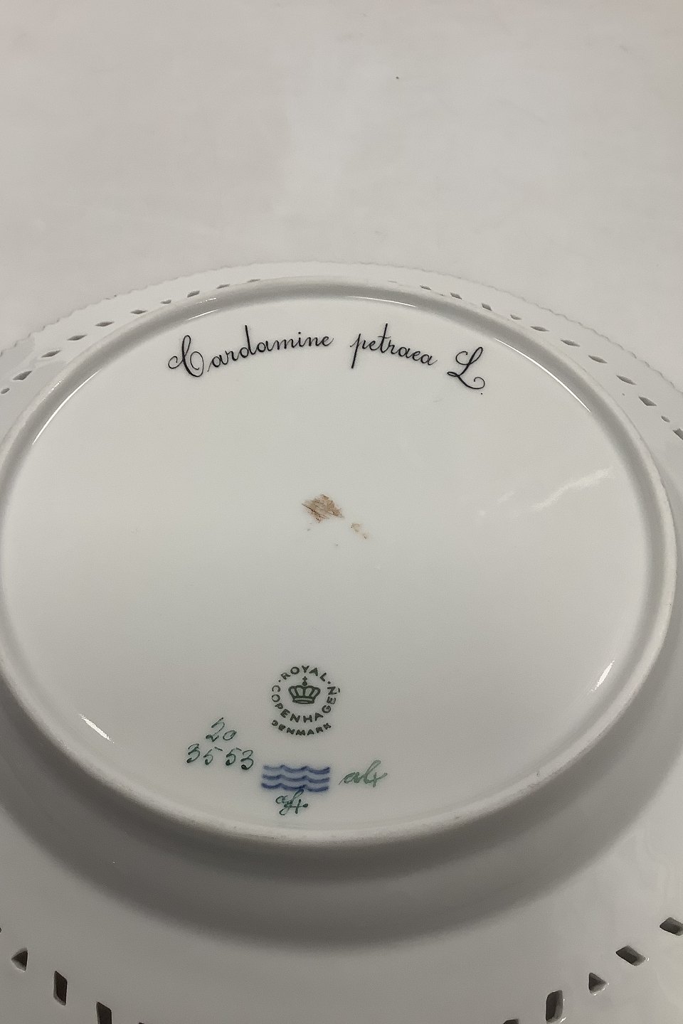 Royal Copenhagen Flora Danica tallerken med gennembrudt kant No 20/3553. Latinsk navn: Cardemine Petrea L