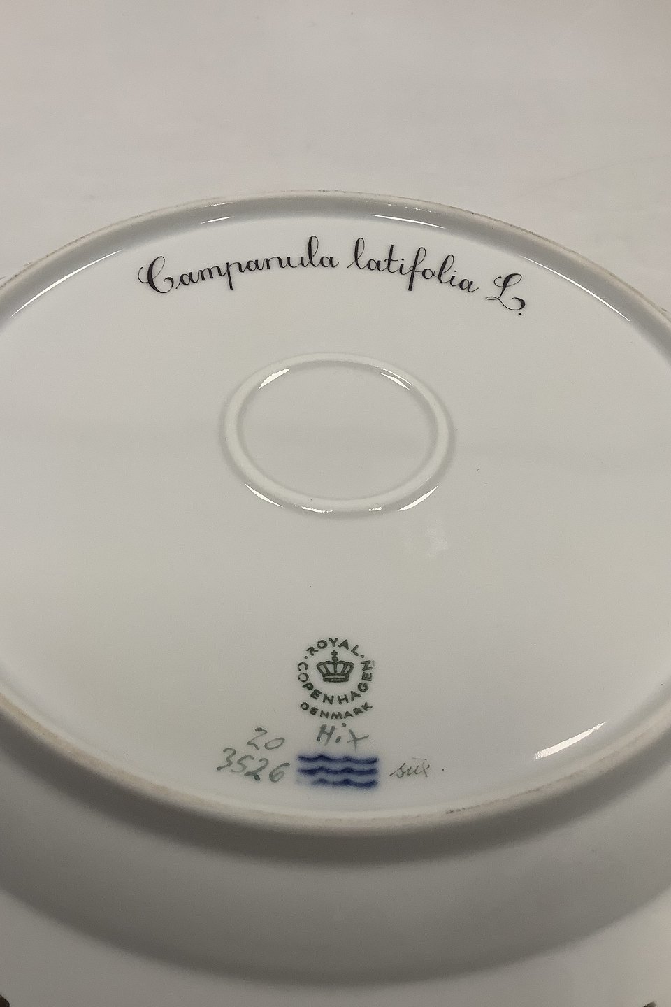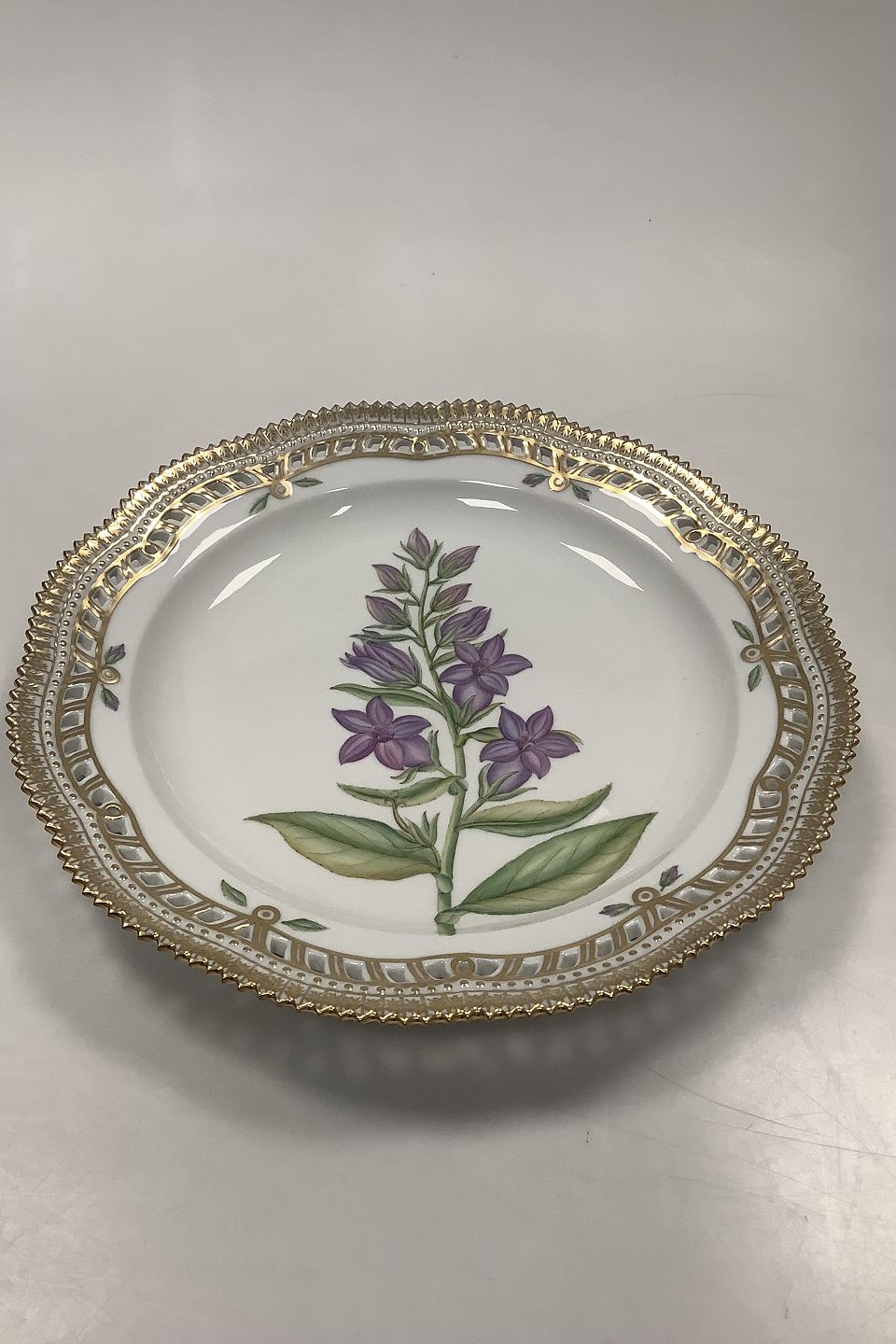 Royal Copenhagen Flora Danica Tallerken med gennembrudt kant No 20 / 3526. Måler 27cm / 10.63 inch. Latinsk tekst: Companula latifolia L
