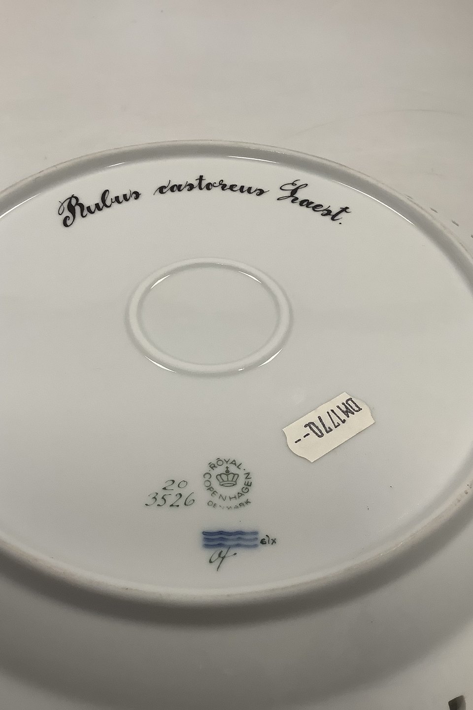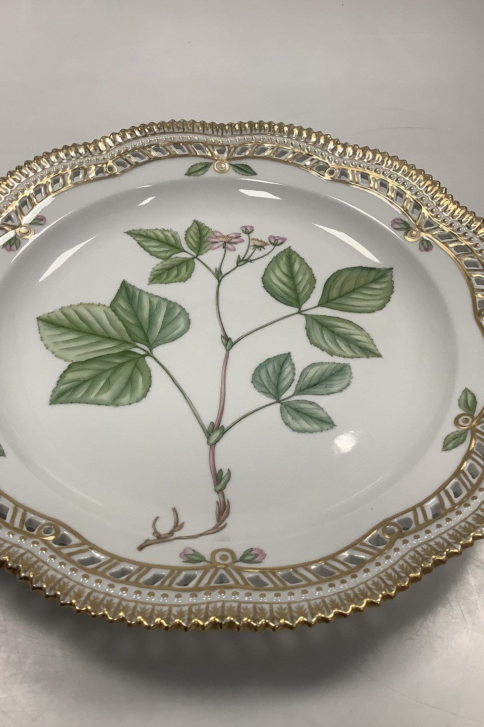 Royal Copenhagen Flora Danica Plate with pierced border No 20 / 3526. Measures 27cm / 10.63 inch. Latin name: Rubus castoreus Laest