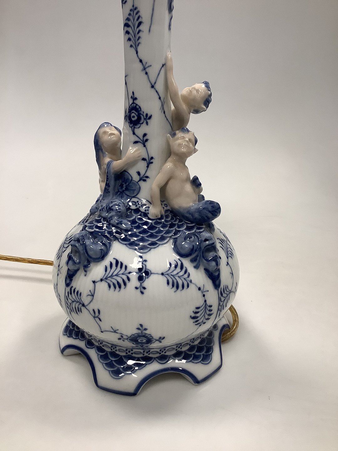 Royal Copenhagen Musselmalet Helblonde Lampe / underdel til 5 armet lysestage No 1006