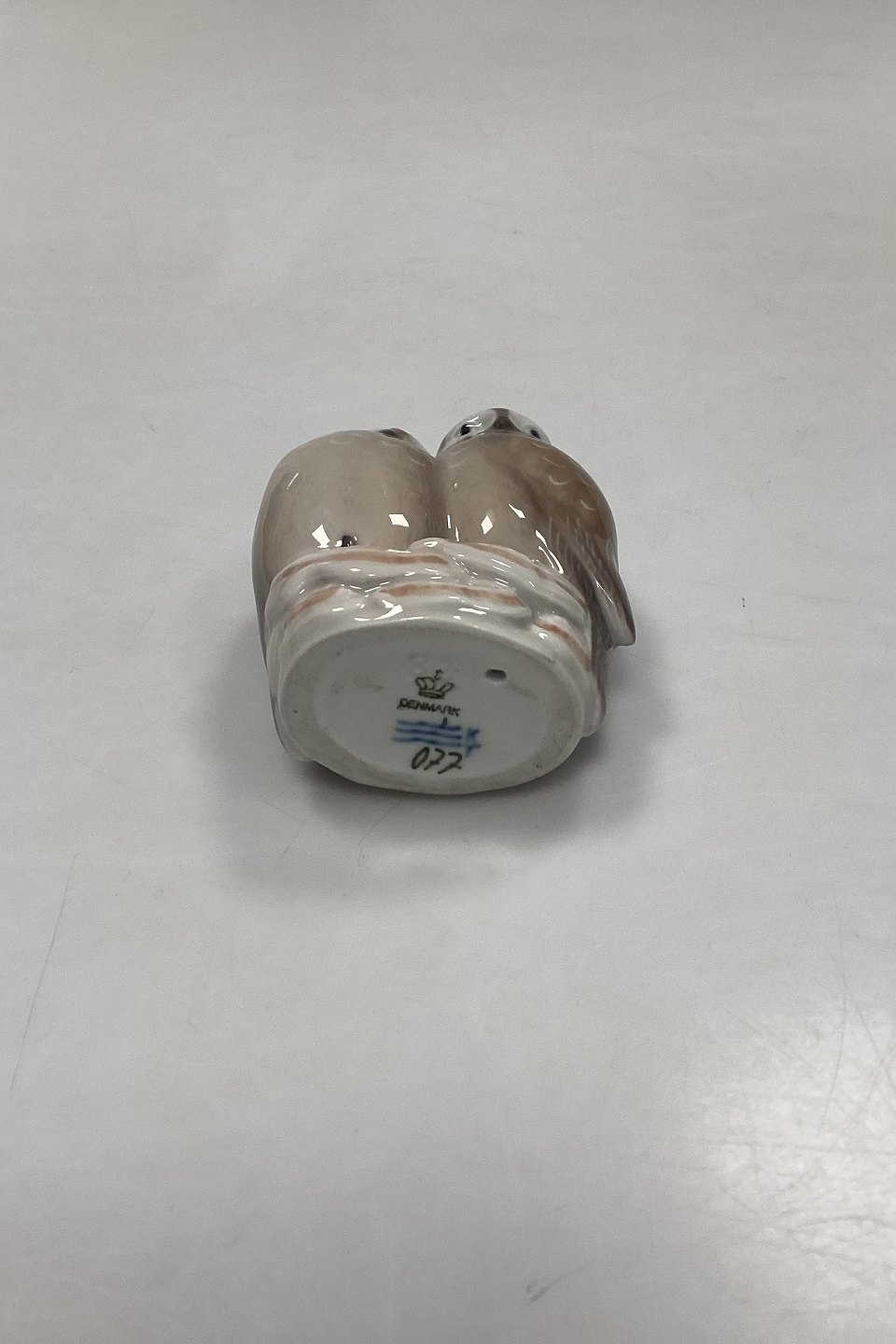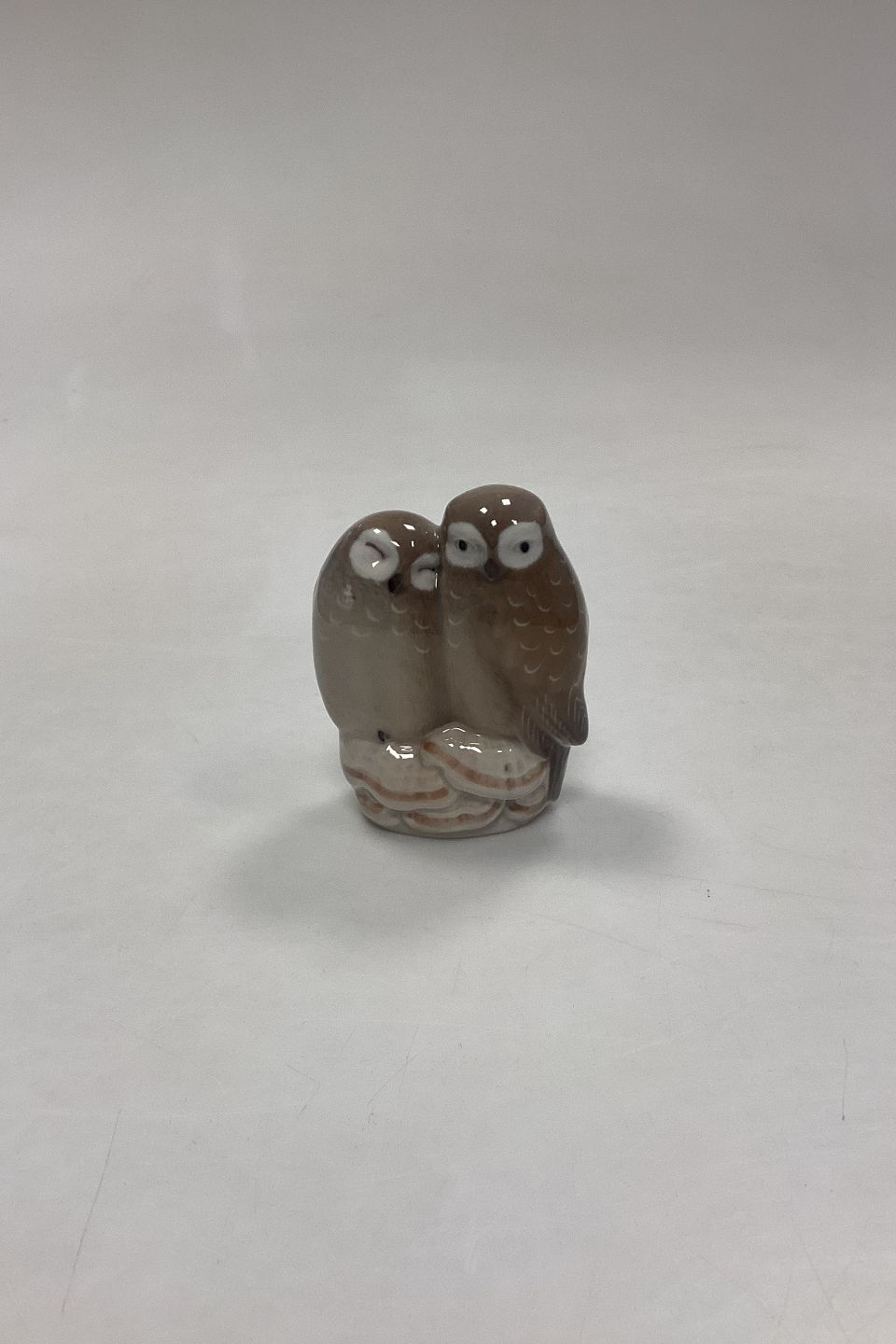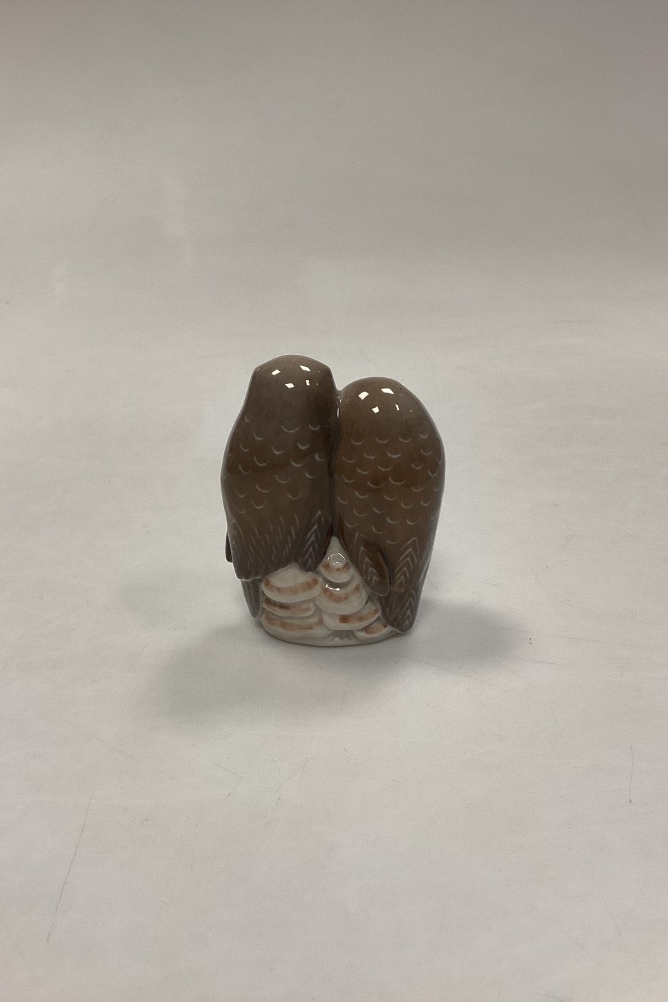 Royal Copenhagen Figurine - Pair of Owls No. 077 or 834. Designed by Th. Madsen in 1907. Measures 9 cm x 7 cm / 3.54 in. x 2.75 in. 3rd Quality.