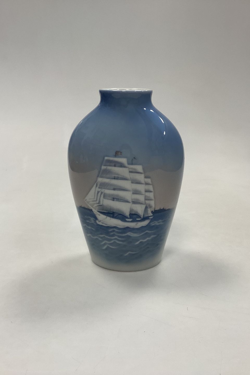 Bing og Grøndahl Vase med Sejlskib No. 1302/6239. Måler 18 cm / 7,08 in. og er i god stand.