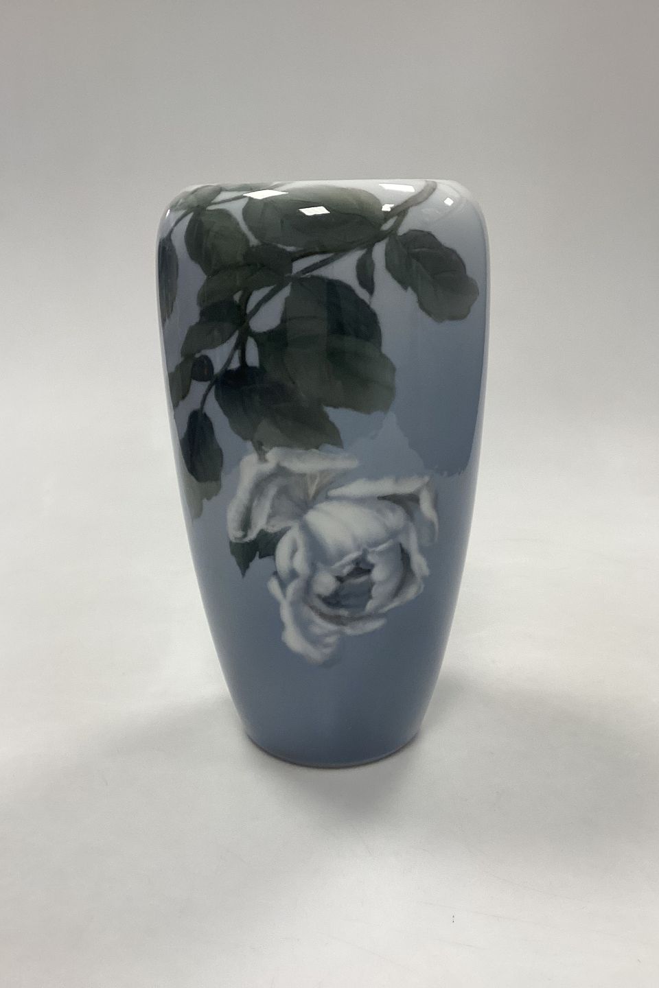 Royal Copenhagen Vase - Hvid Rose No. 1092/1049. Måler 23 cm / 9,05 in.