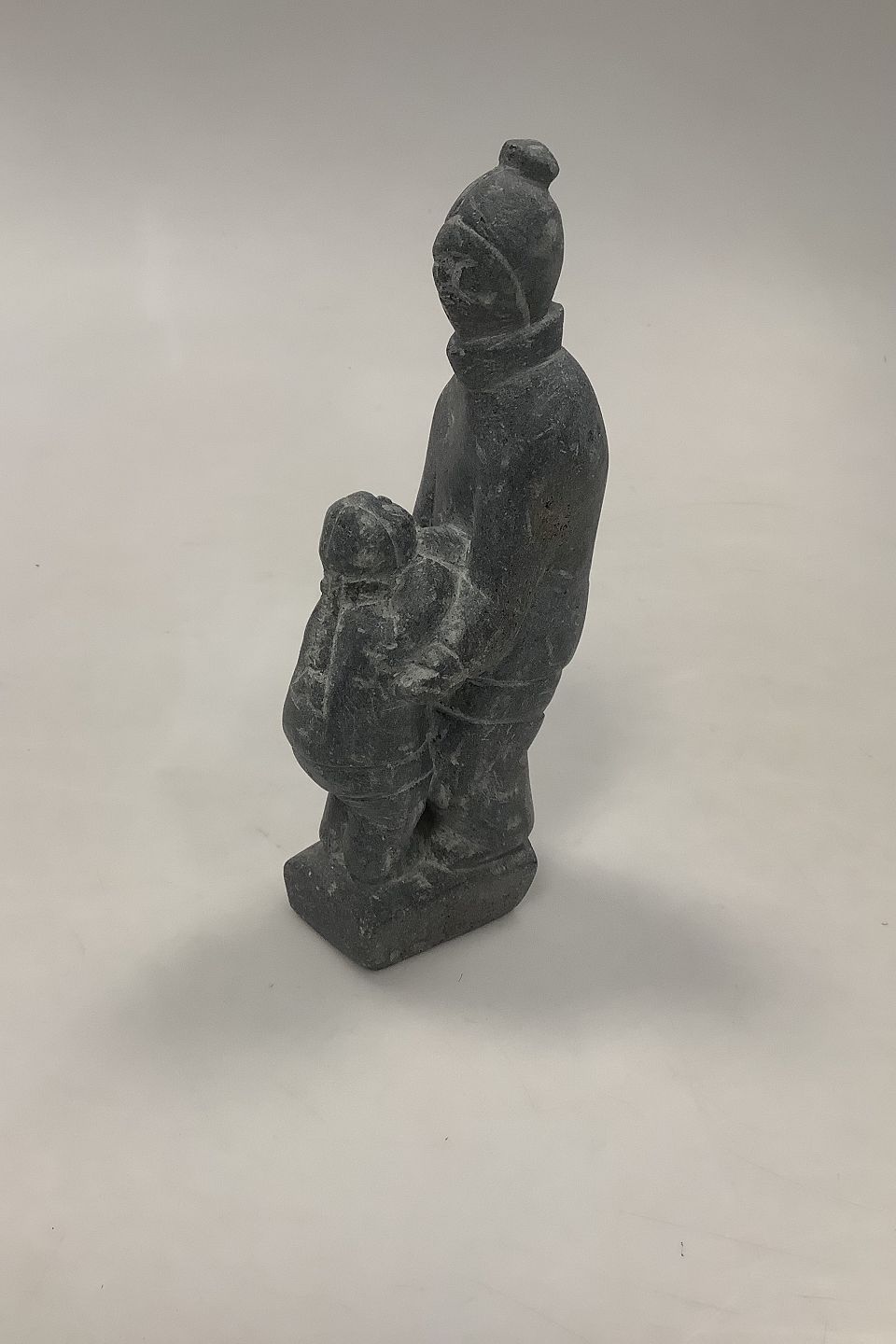 Grønlandsk Fedtstensfigur af Inuit Kvinde og barn