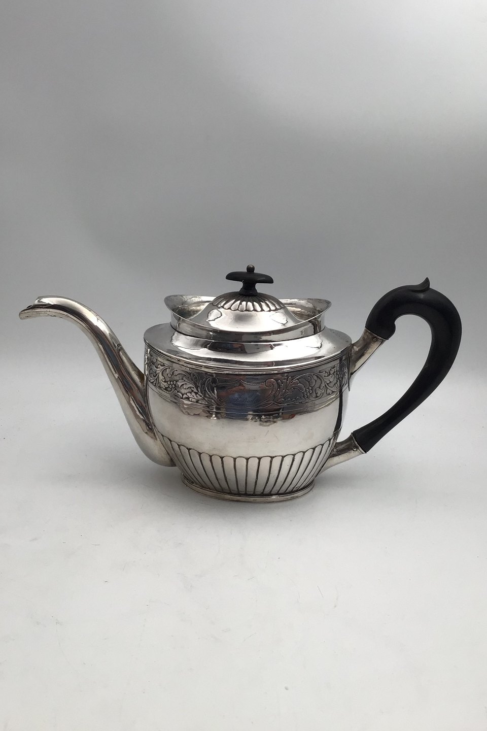 Dansk Sølv Empire Thekande (1816) Måler H 15 cm (5.90 inch) Vægt incl træ håndtag og lågknop 546 gr (19.27 oz) (Gravering)