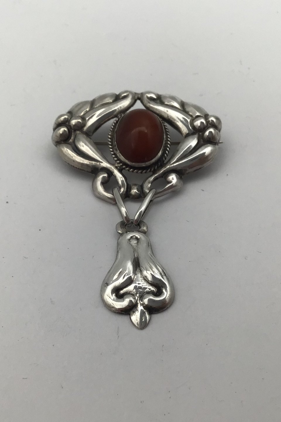 Dansk Sølv Skønvirke Art Nouveau Broche med Rav Måler 7,2 cm x 4.5 cm (2.83 inch x 1.77 inch) Vægt 8.4 gr (0.30 oz)
