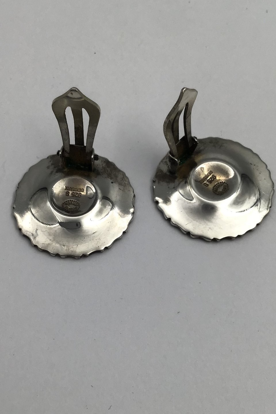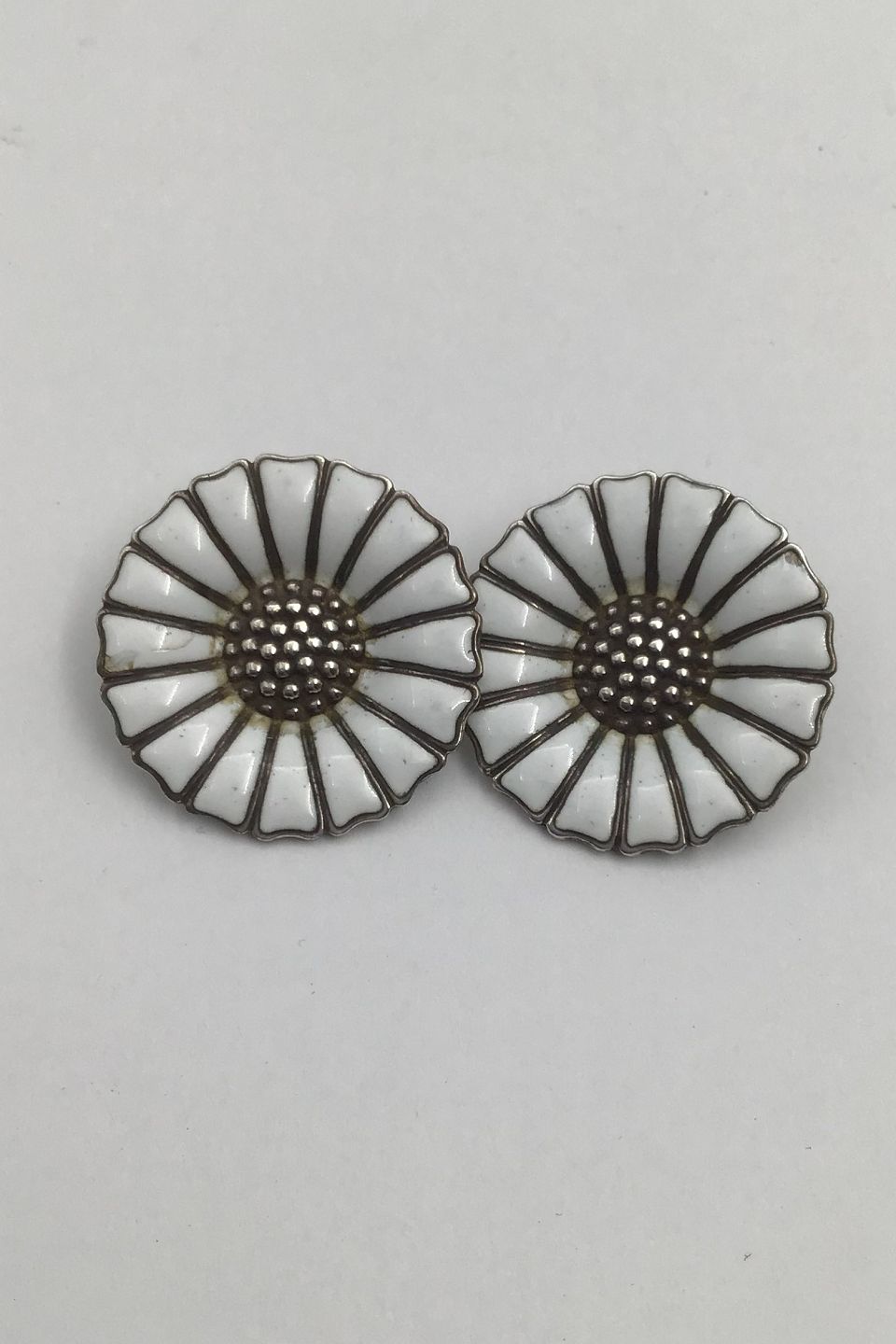 Georg Jensen Sterling Sølv Marguerit Øreclips (Stor) Måler Diam 2.4 cm (0.95 inch) Samlet vægt 11.5 gr. (0.41 oz) (Emalje fejl)