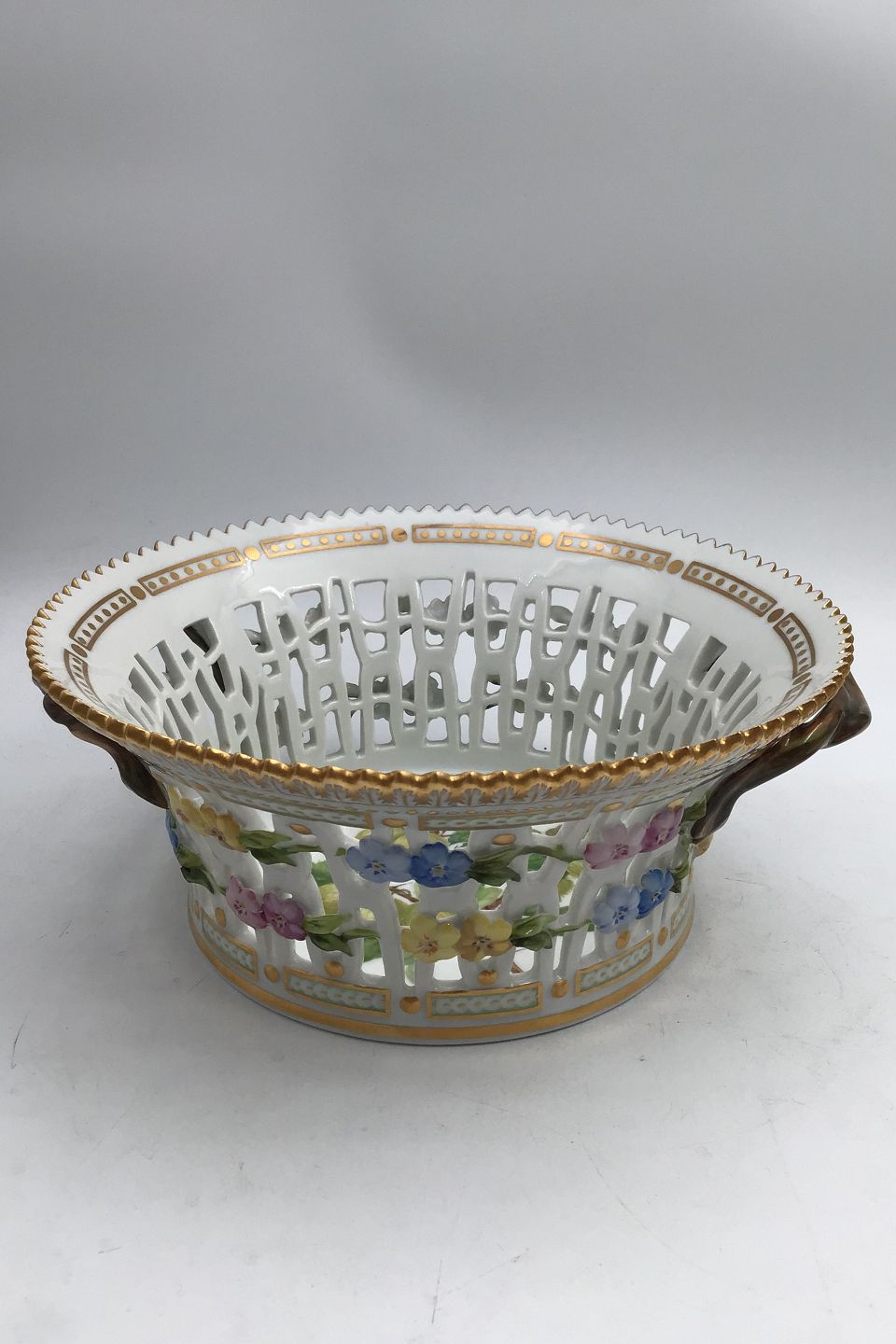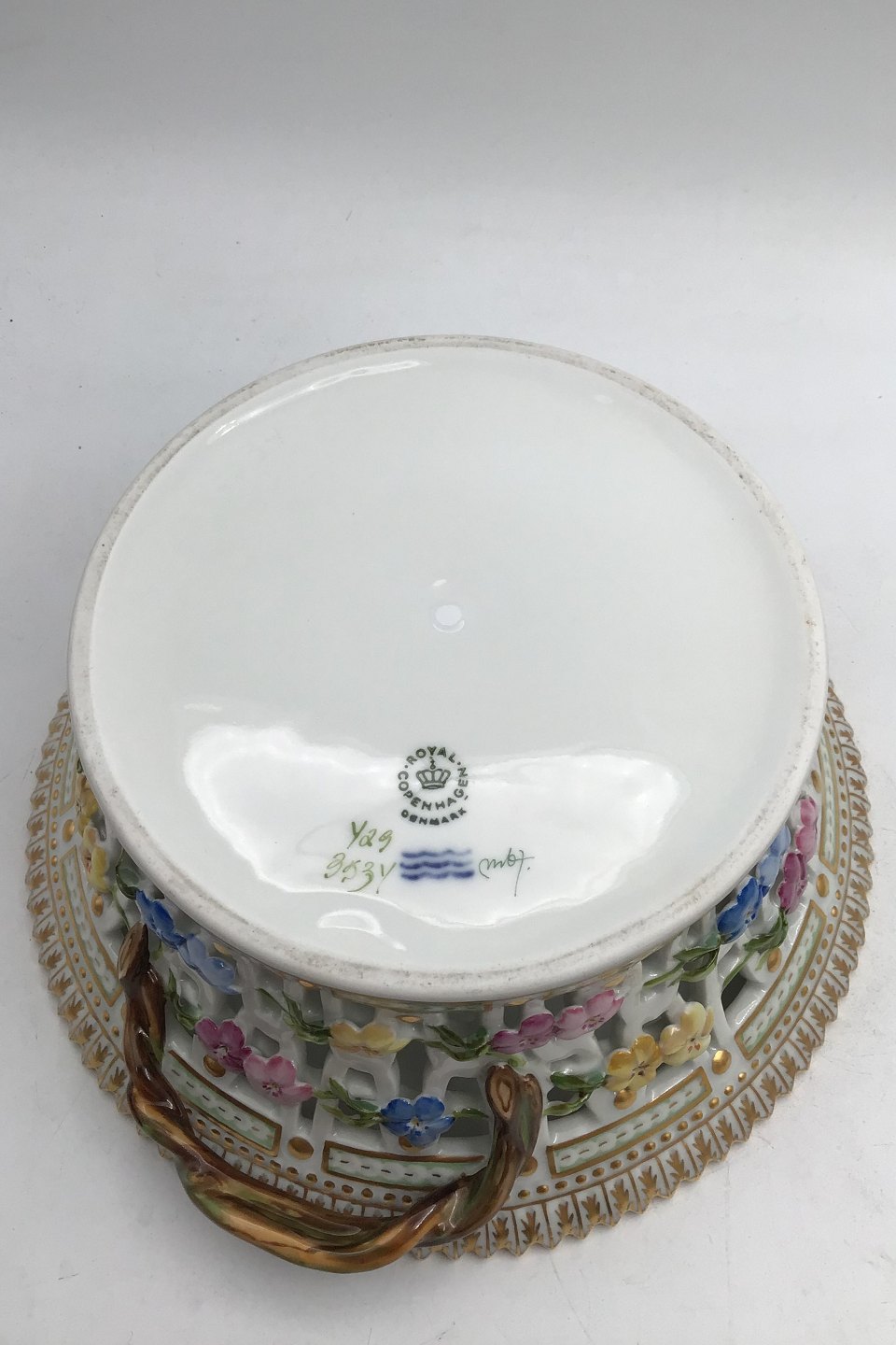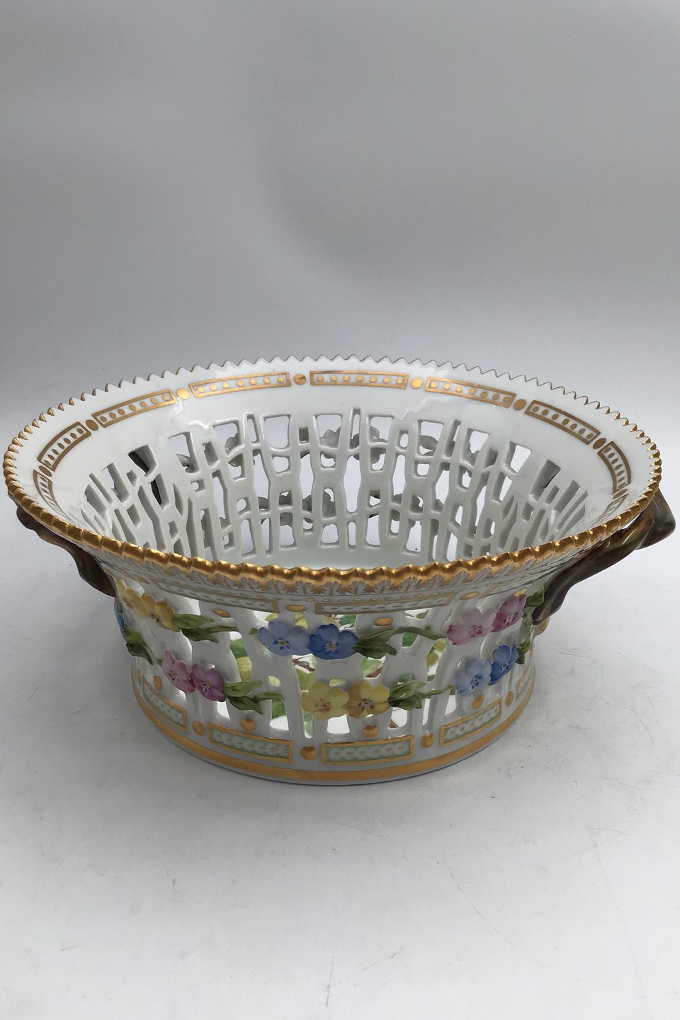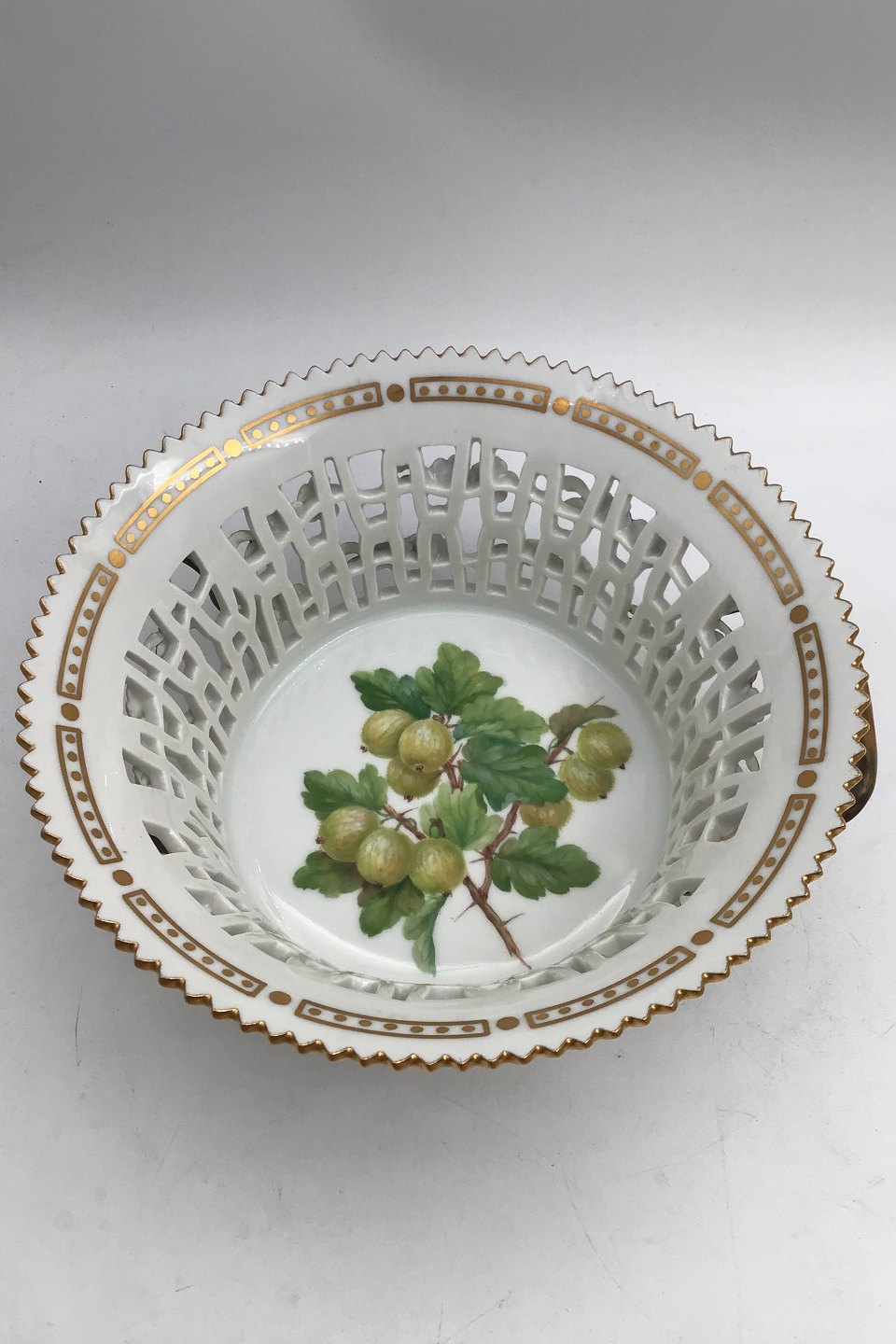 Royal Copenhagen Flora Danica Rund Frugtskål No. 429/3534 (Stikkelsbær) Måler H 9.2 cm (3.62 inch) Diam 21.5 cm (8.46 inch) 1.sortering