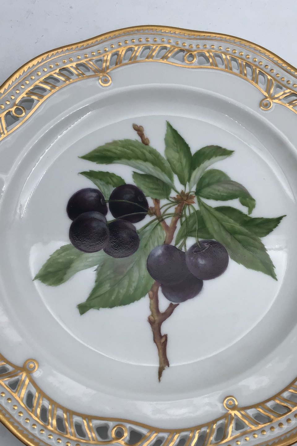 Royal Copenhagen Flora Danica Fruit Plate No. 429/3584. Measures 22.2 cm / 8.74 inch. 1st Quality. Pierced Border.