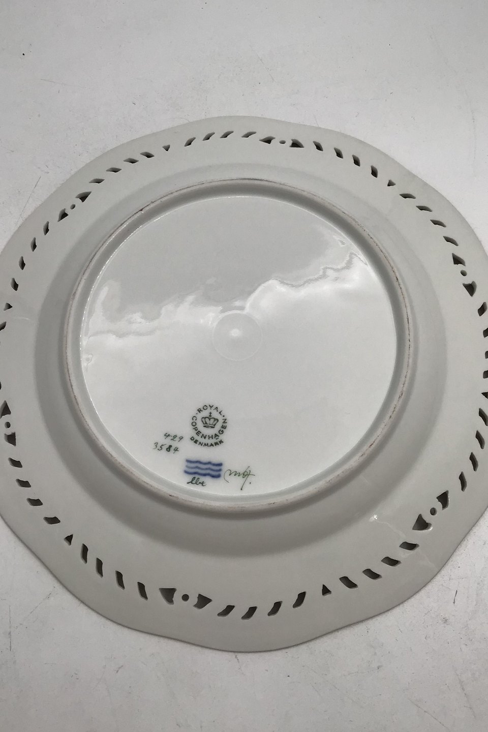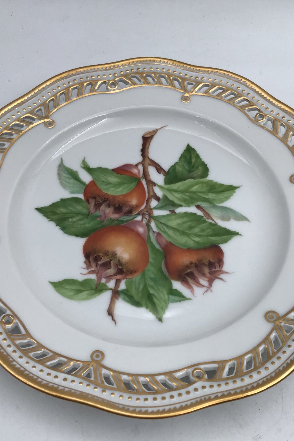 Royal Copenhagen Flora Danica Frugttallerken No. 429/3584. Måler 22,2 cm. (8.74 inch) 1. Sortering. Med gennembrudt kant.