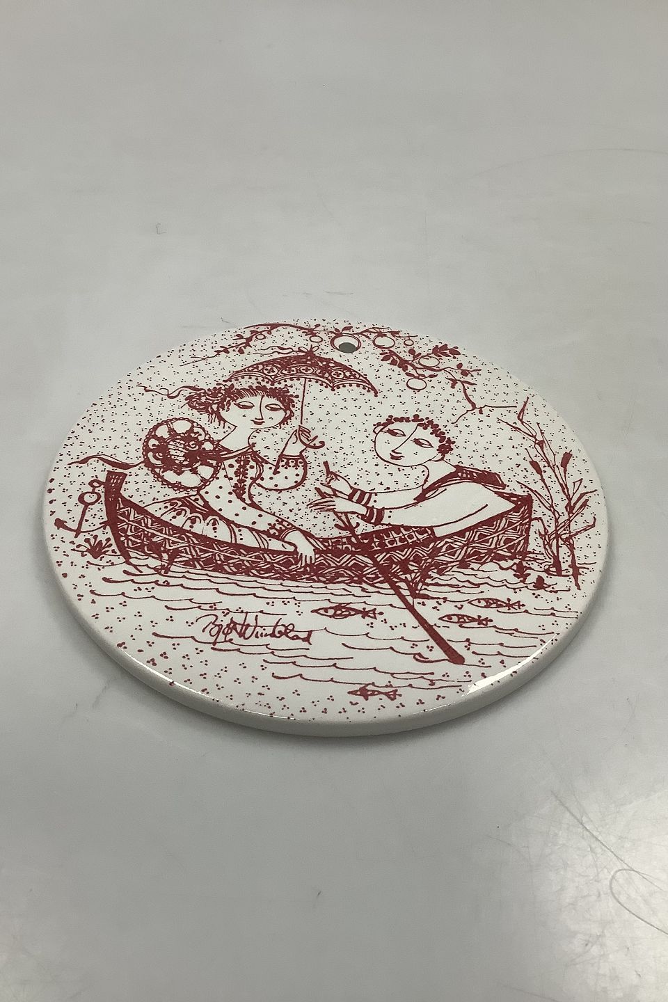 Rød Månedsplatte i fajance for juli - NOCTURNE. Designet af Bjørn Wiinblad for Nymølle. I perfekt stand. Fabriksmærket på bagsiden. Mål: 15 cm (5.90 inch)