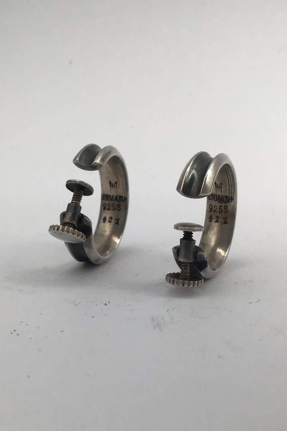 Hans Hansen Sterling Silver Earrings (Screws) No. 421 Measures Dia 2 cm (0.78 inch) Combined weight 9.7 gr. (0.34 oz)