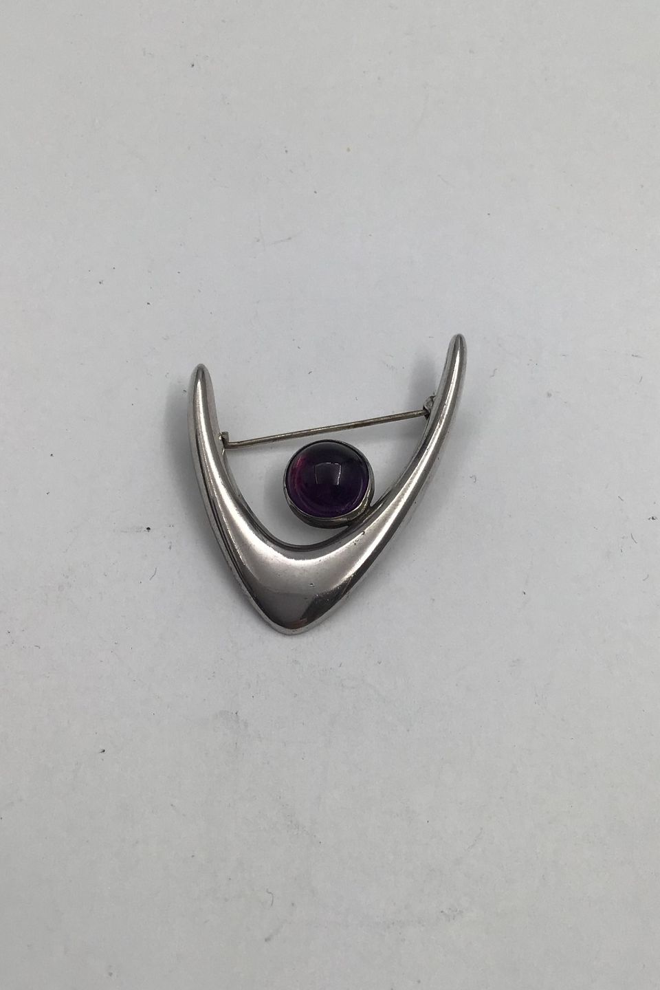 Arne Johansen Sterling Sølv Moderne Broche med Ametyst Måler 4.5 cm x 3.5 cm (1.77 inch x 1.37 inch) Vægt 13.5 gr. (0.48 oz)