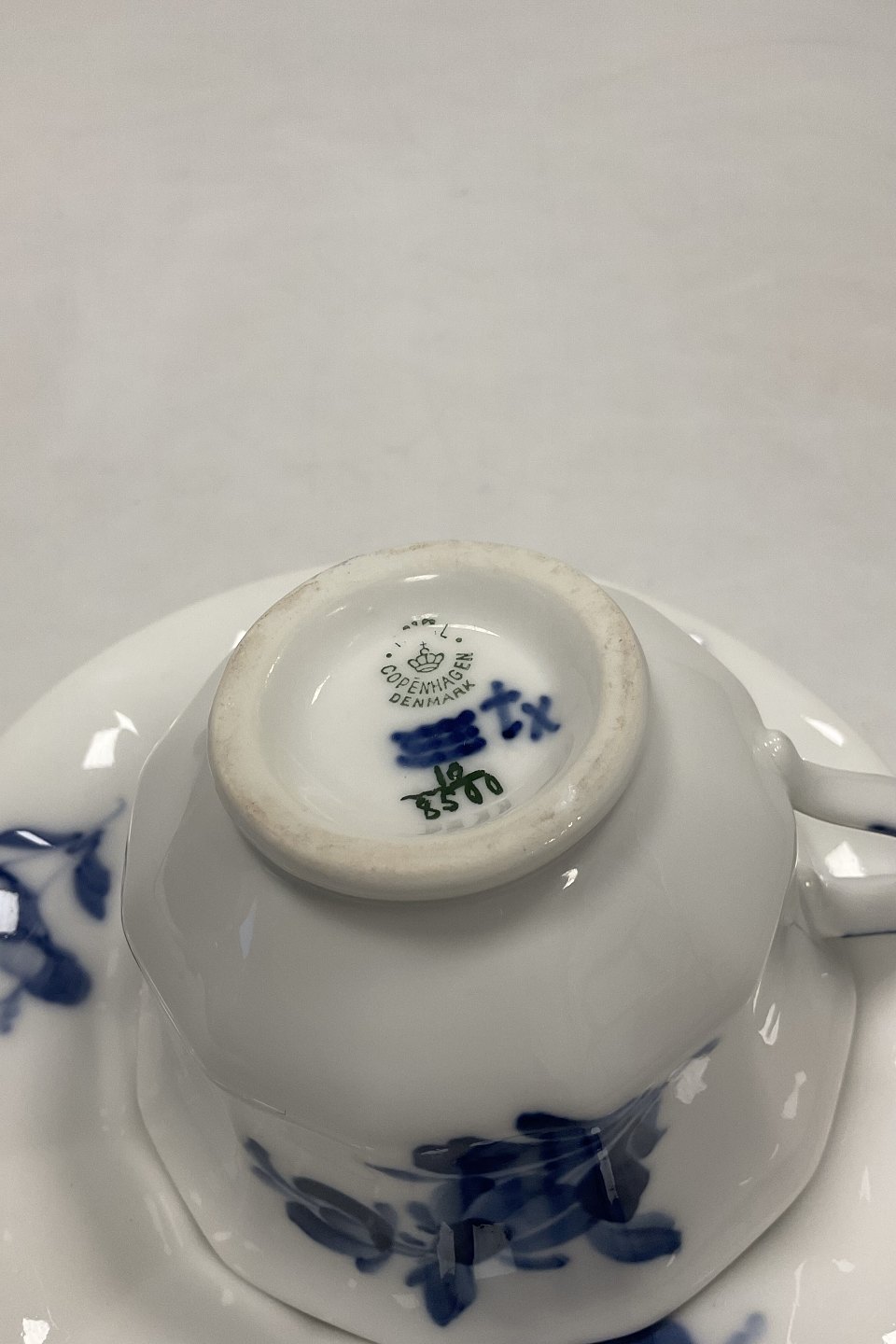 Royal Copenhagen Blå Blomst Kantet Tekop og Underkop No 8500. 18 cl. 6 cm x 9 cm