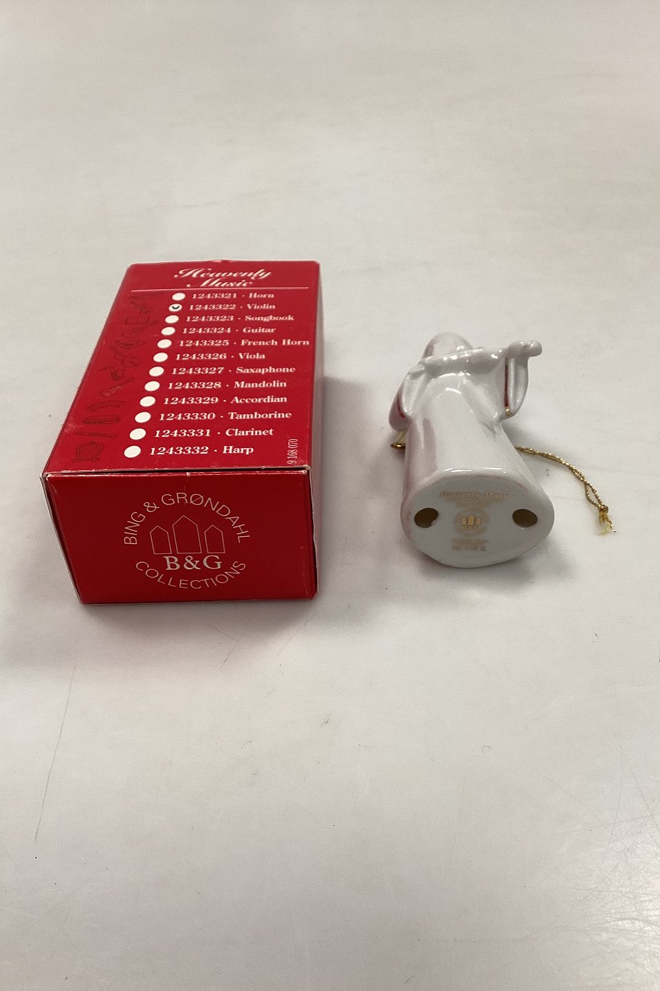 Bing and Grøndahl Figurine Heavenly Music Angel - Violin No. 2. Christmas ornament in blanc de chine porcelain with gold and string for hanging. Measures 9.5 cm / 3.74 in.