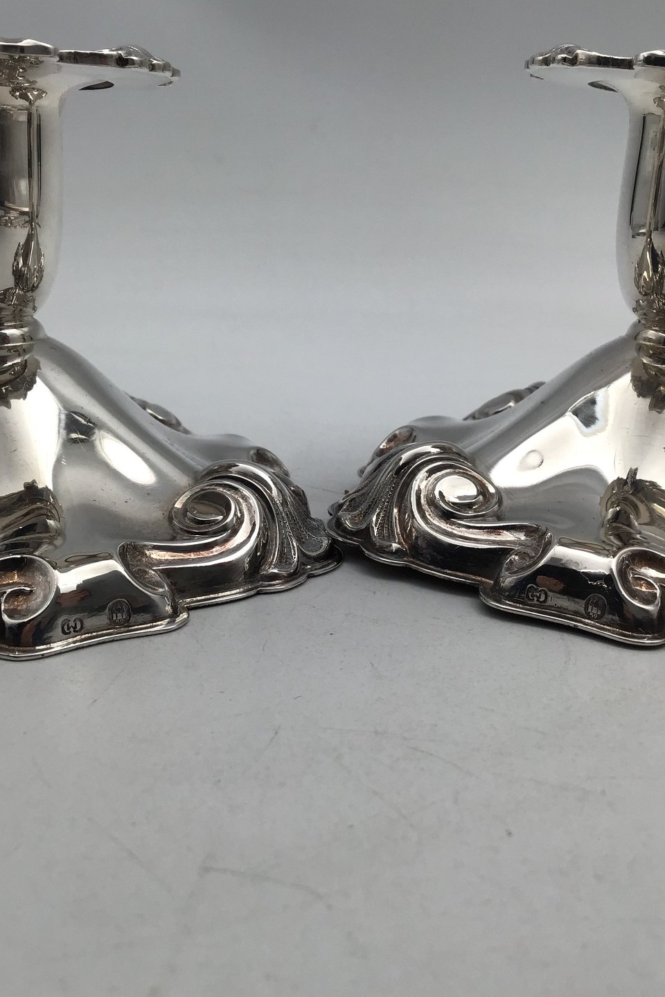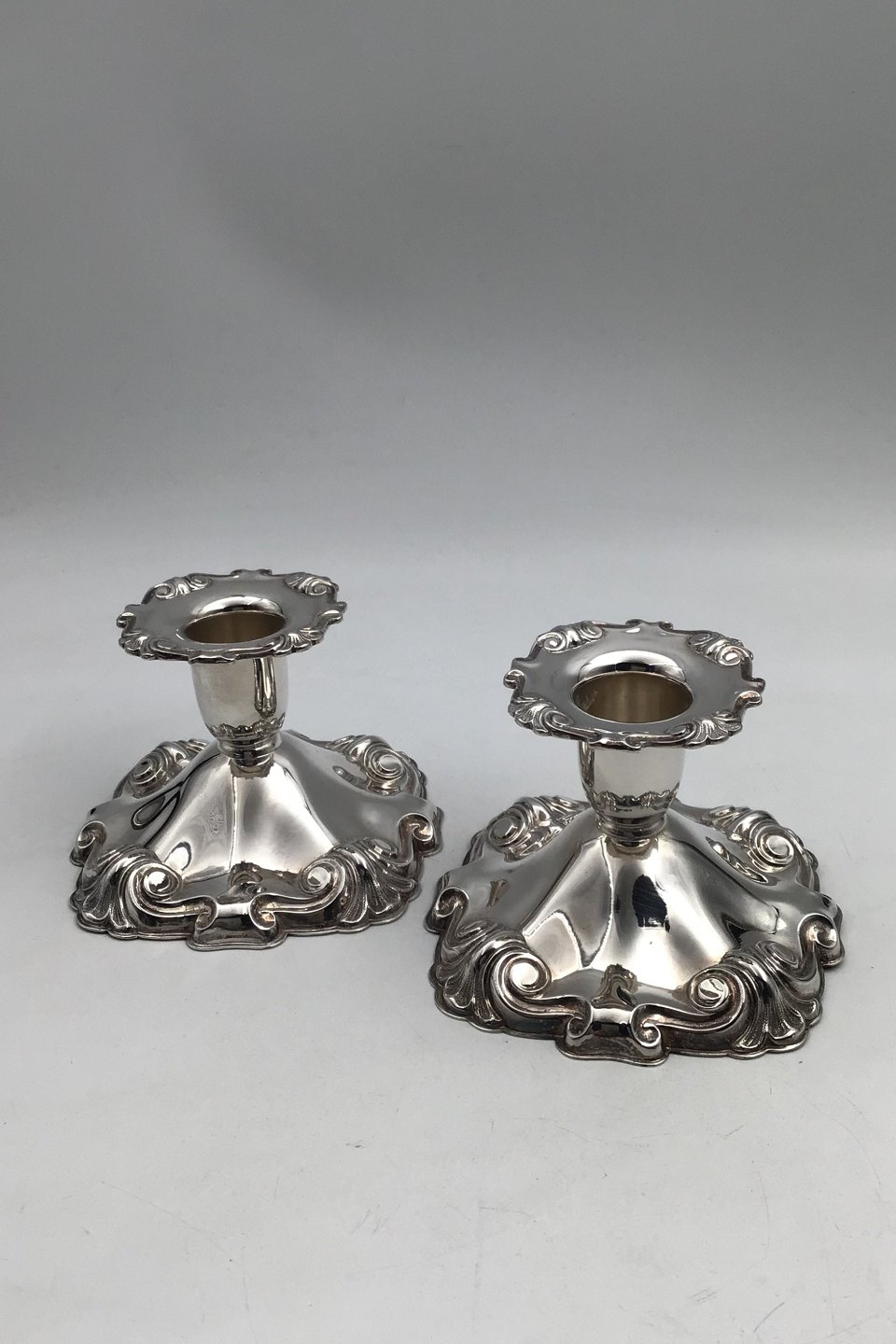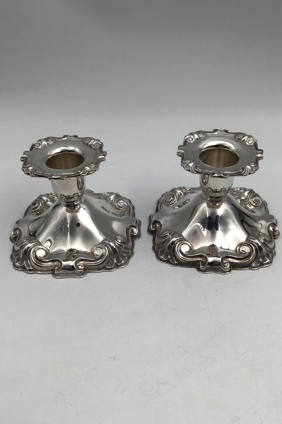 Cohr Sølv Lysestager (2) Måler H 7 cm (2.75 inch) 10 cm x 10 cm (3.93 inch x 3.92 inch) Samlet Vægt 440 gr (15.5 oz) (udfyldt)