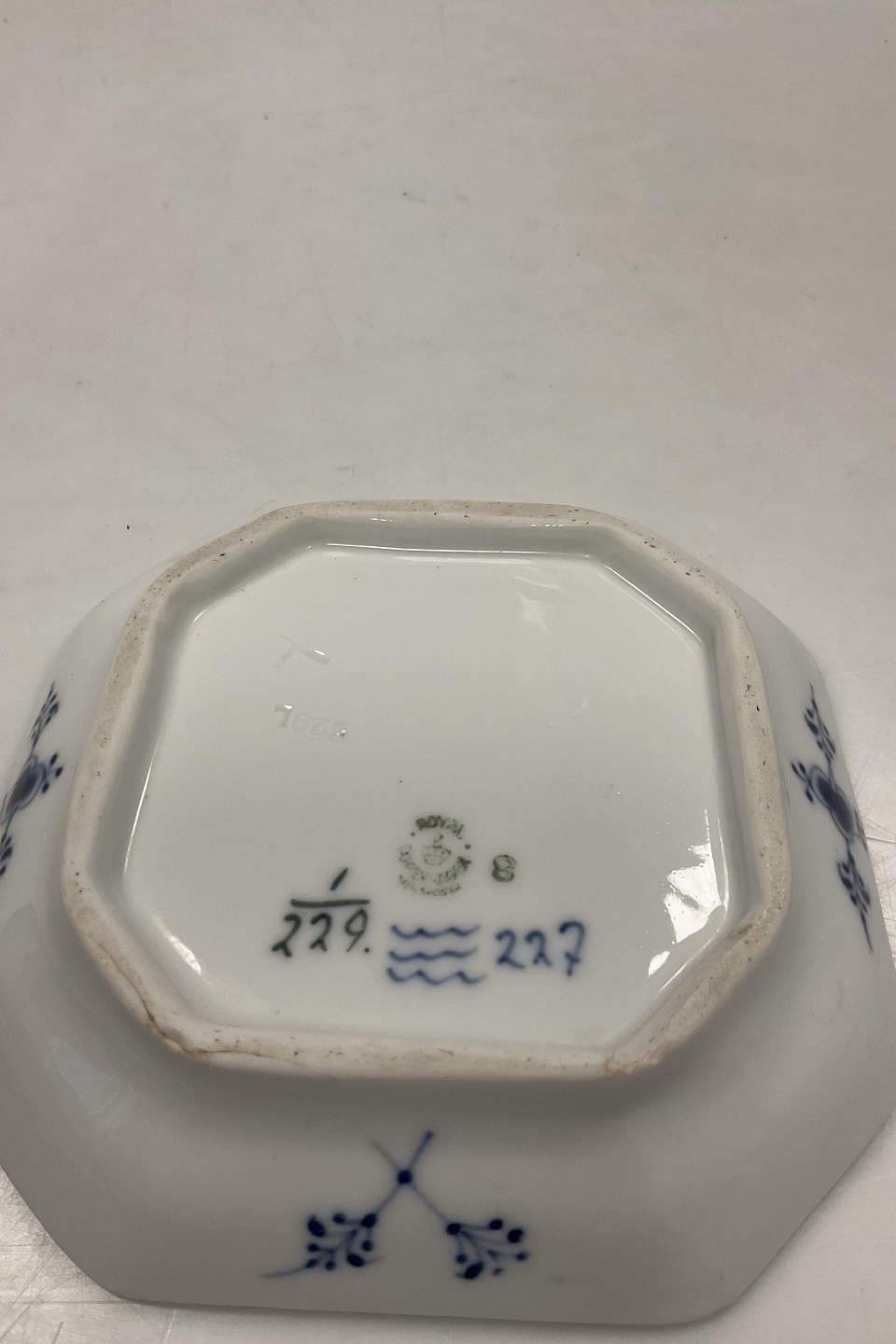 Royal Copenhagen Musselmalet Riflet Lille kantet skål No 229. Måler 13 cm x 13 cm.