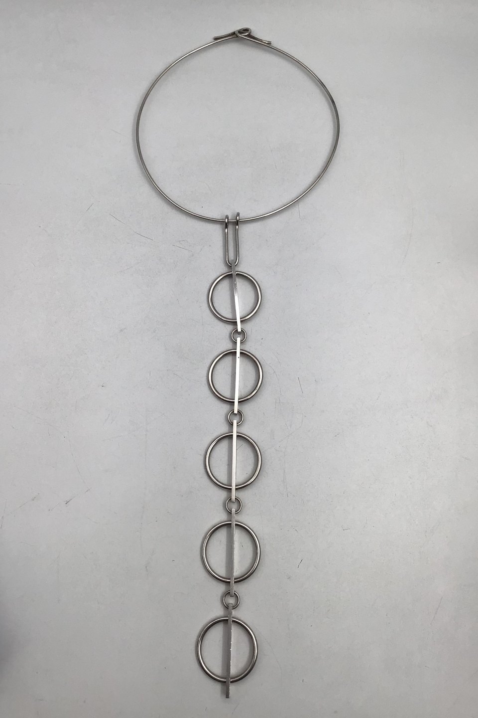 Hans Hansen Sterling Sølv Halssmykke Måler Halsring Diam 12 cm (4.72 inch) Vedhæng 26 cm (10.23 inch) Vægt 70.64 gr (2.49 oz)