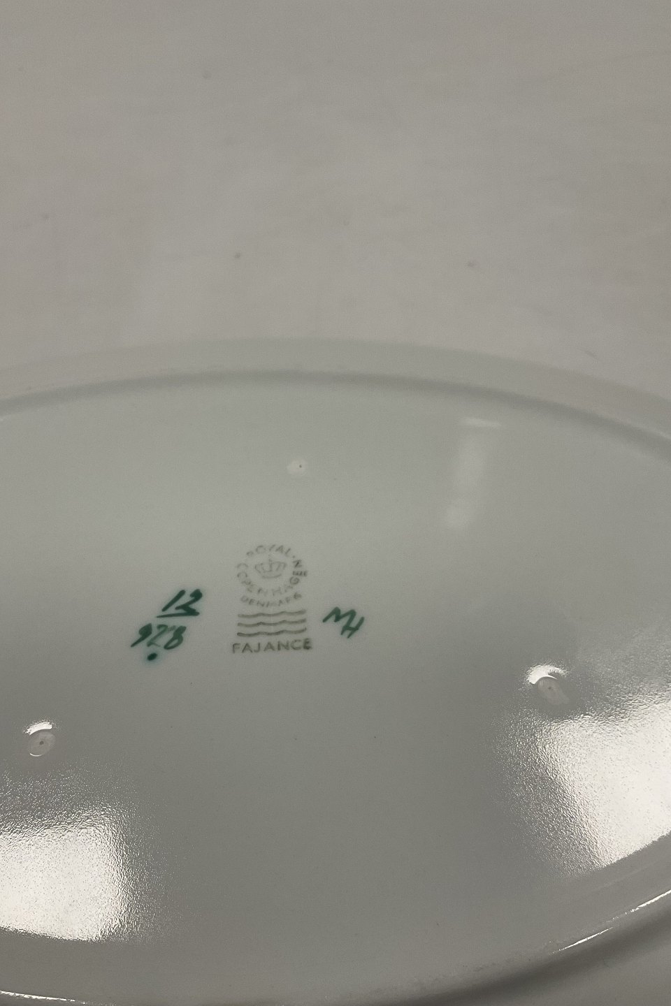 Royal Copenhagen Grøn Tranquebar Ovalt Fad No. 928. Måler 32 x 23 cm. I fin hel stand.