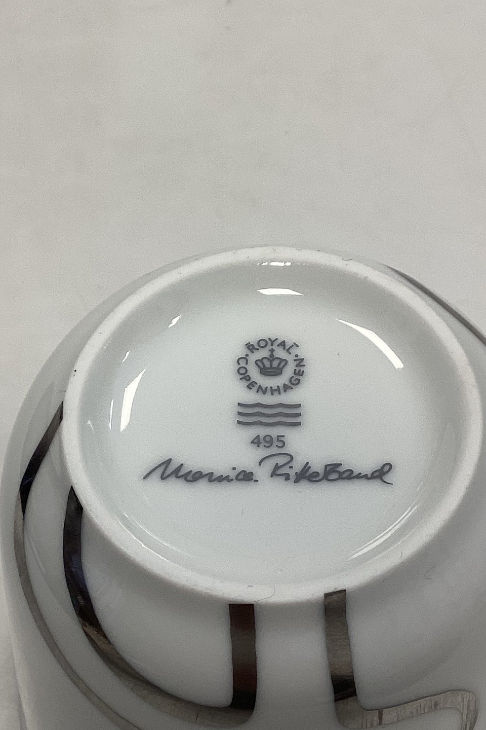 Royal Copenhagen Musica Thermal Cup No. 495 with music man in silver.