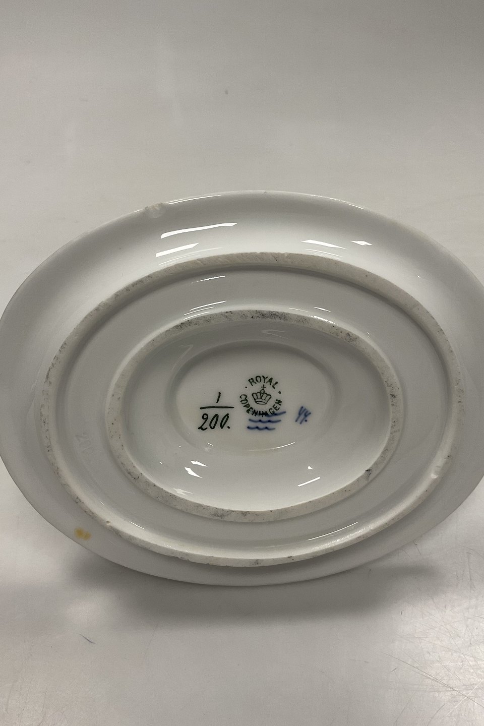 Royal Copenhagen Musselmalet Riflet Saucekande med Underskål No 200. Måler 20 cm x 14 cm ( 7 7/8 in. x 5 33/64 in. )