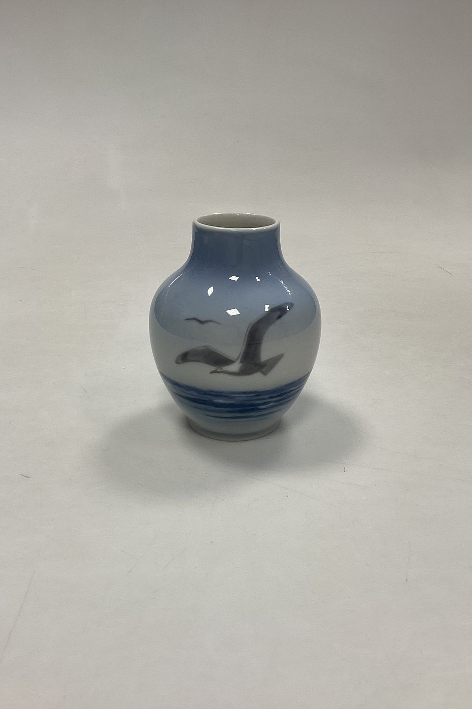 Royal Copenhagen Art Nouveau Vase No. 1138/45A. Motiv med måger på havet.
