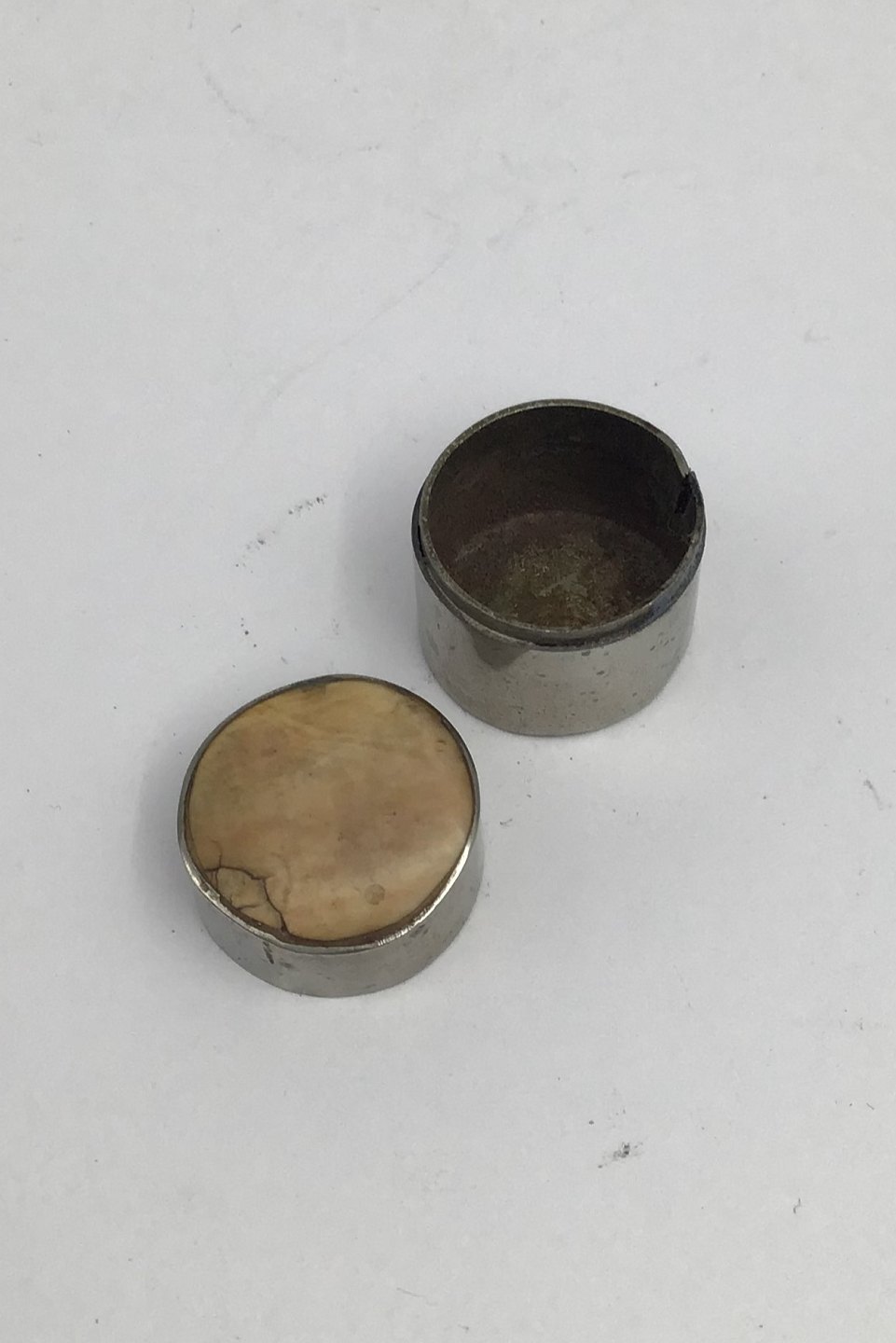 Unmarked Silver Pill Box (Etui) Measures H 2.3 cm (0.90) Diam 2 cm (0.78 inch) Weight 9.10 gr (0.32 oz)