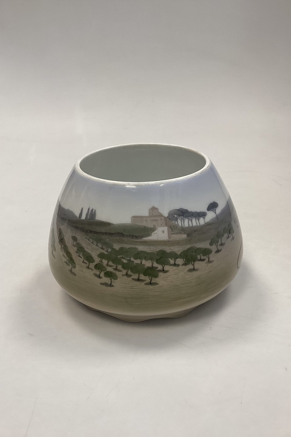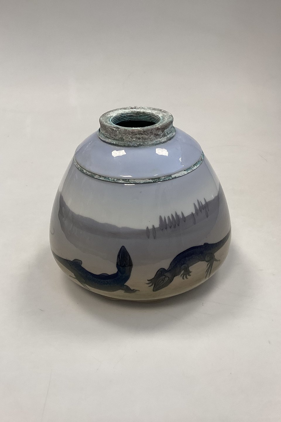 Royal Copenhagen Unika Vase af Anne Fribert med sydlandsk landskab og firben