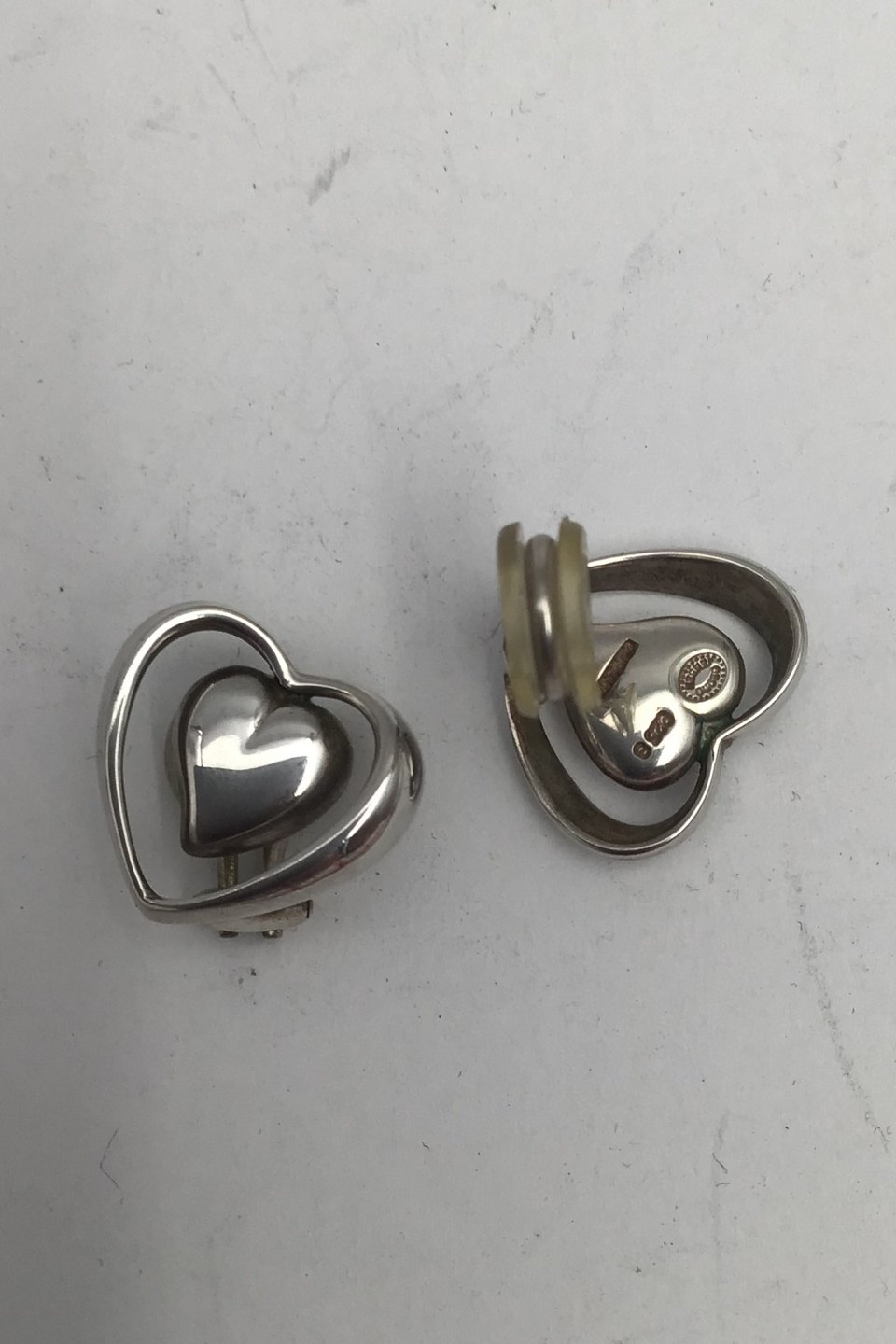 Georg Jensen Sterling Sølv Øreclips 2005 "Lovely" Måler 1.5 cm x 1.6 cm (0.59 inch x 0.62 inch) Samlet Vægt 7.04 gr (0.25 oz)