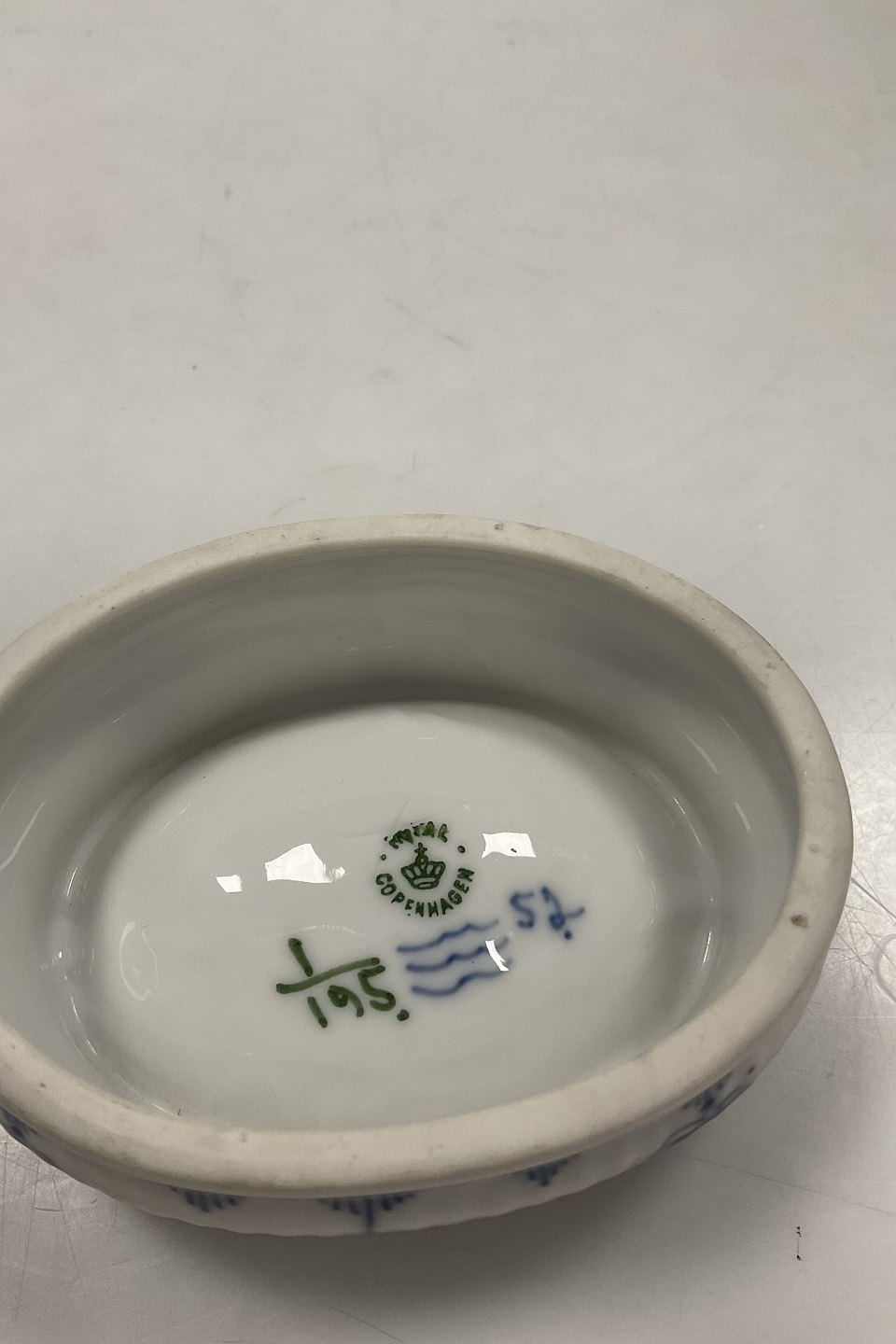 Royal Copenhagen Musselmalet Riflet Saltkar No 195. 8 x 7 cm. Kan anvendes som smør og kaviarskål.