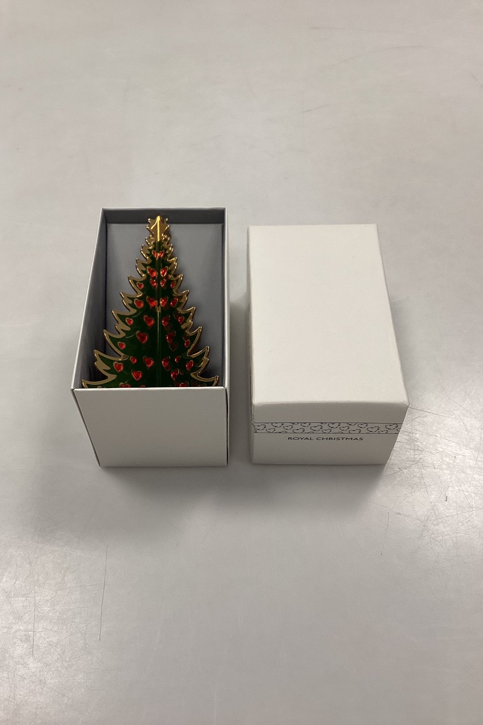 Royal Copenhagen Christmas Small Christmas Tree. Table decoration in brass with green enamel and red hearts.