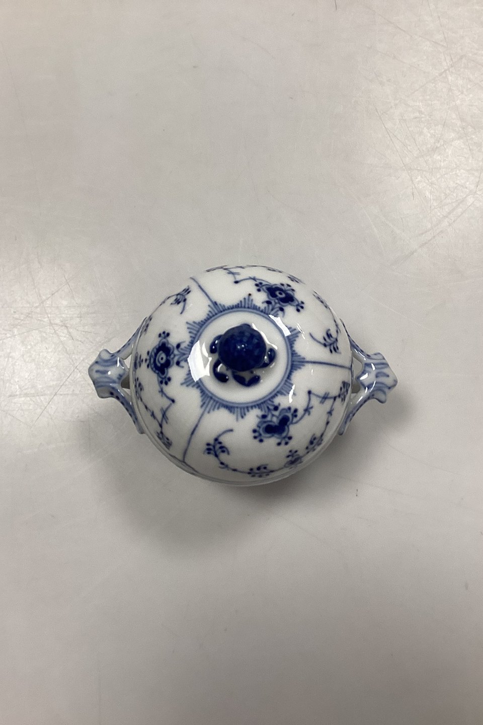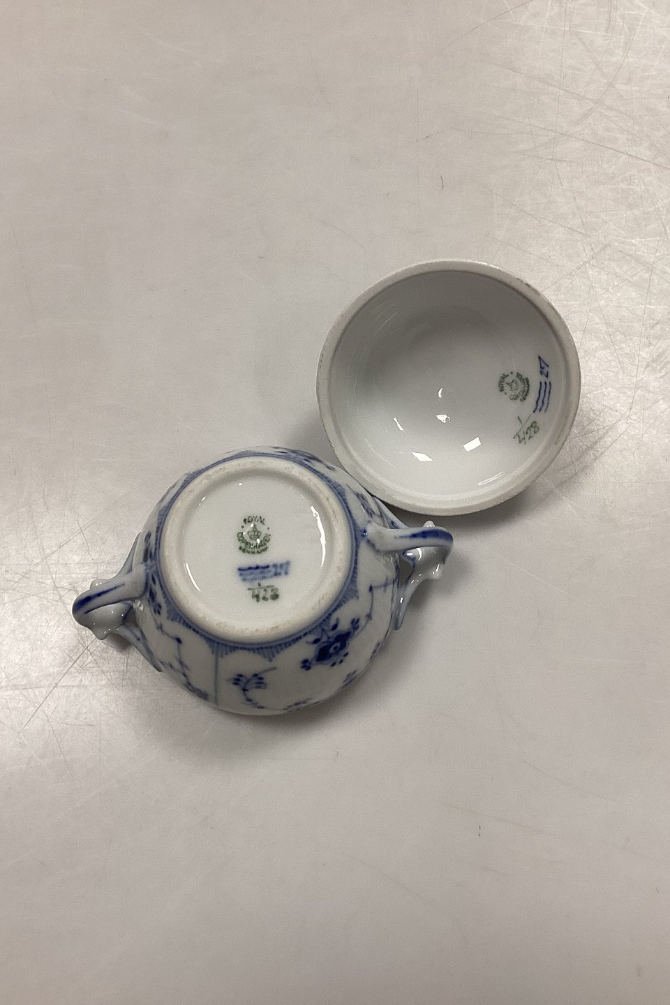 Royal Copenhagen Musselmalet Riflet Sukkerskål No. 428. Måler 8,5 x 10 cm / 3,34 in. x 3,93 in.
