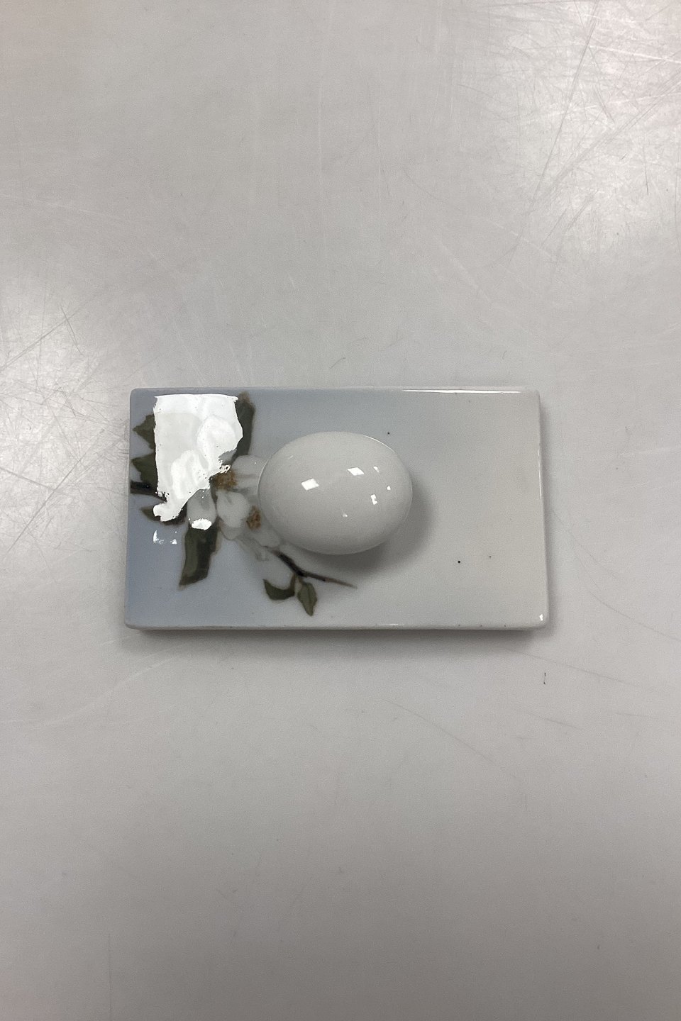 Royal Copenhagen Art Nouveau Top for Ink Blotter Cradle No. 53/926. Motif with white rose.
