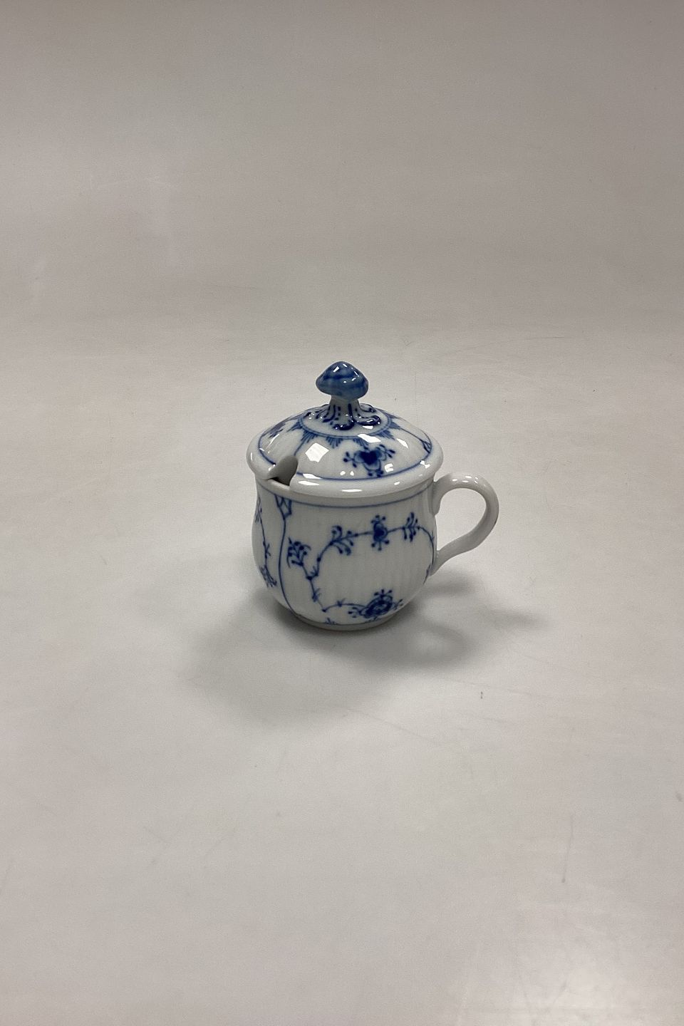 Royal Copenhagen Musselmalet Riflet Sennepskrukke med låg No. 200